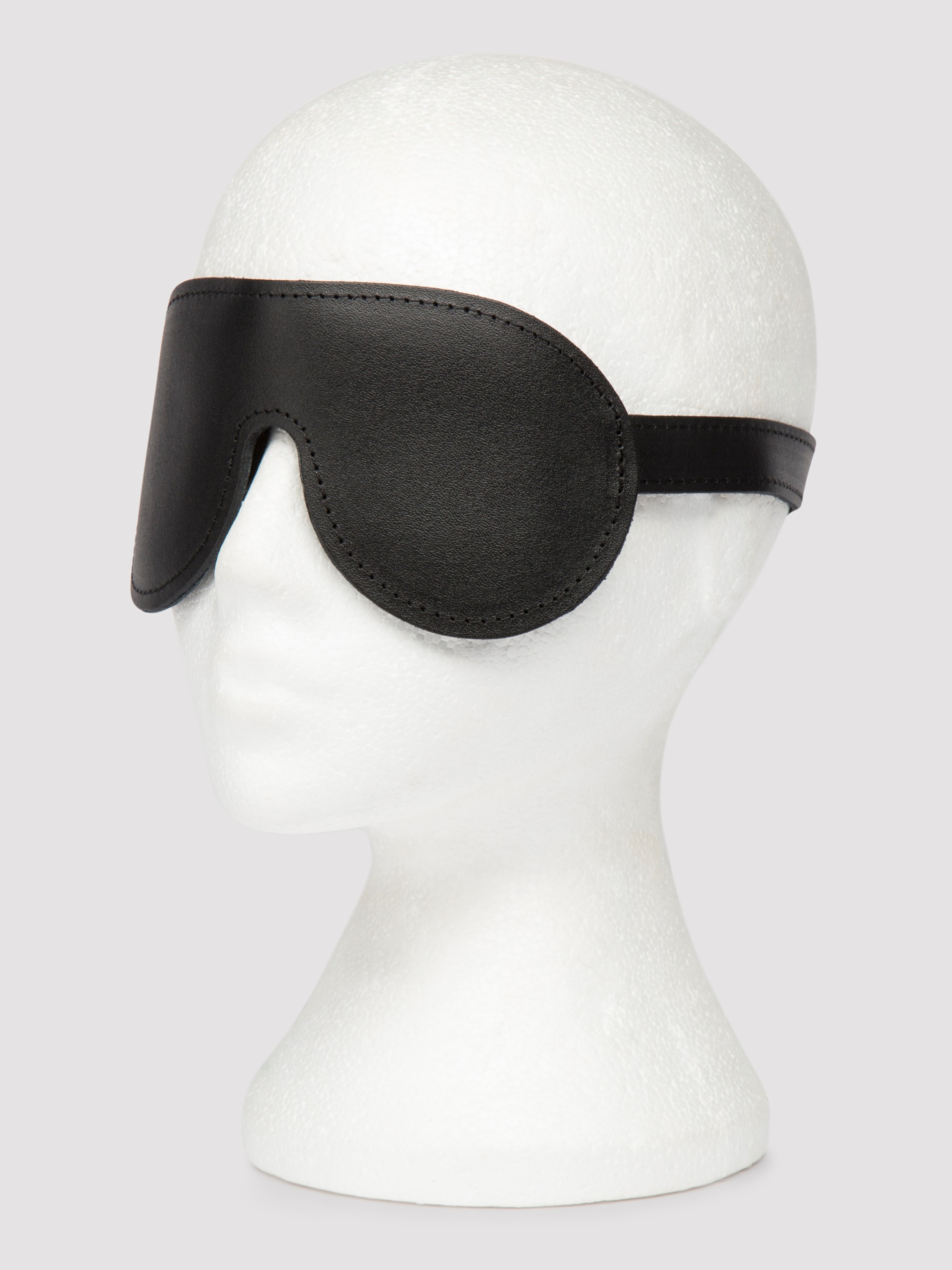 - Durable padded leather blindfold for enhanced sensory deprivation play