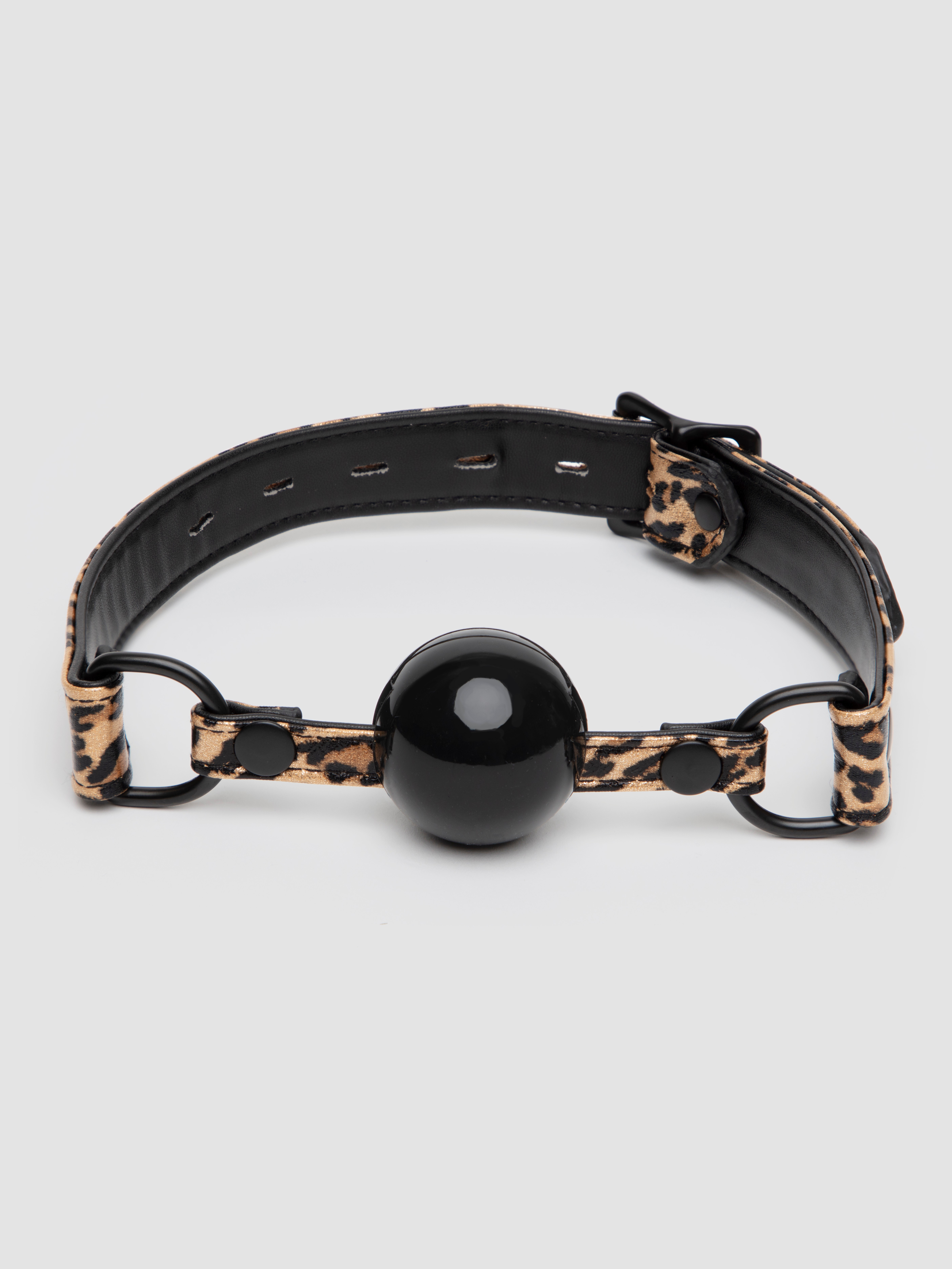 - Silicone ball gag with leopard print straps for effective silencing