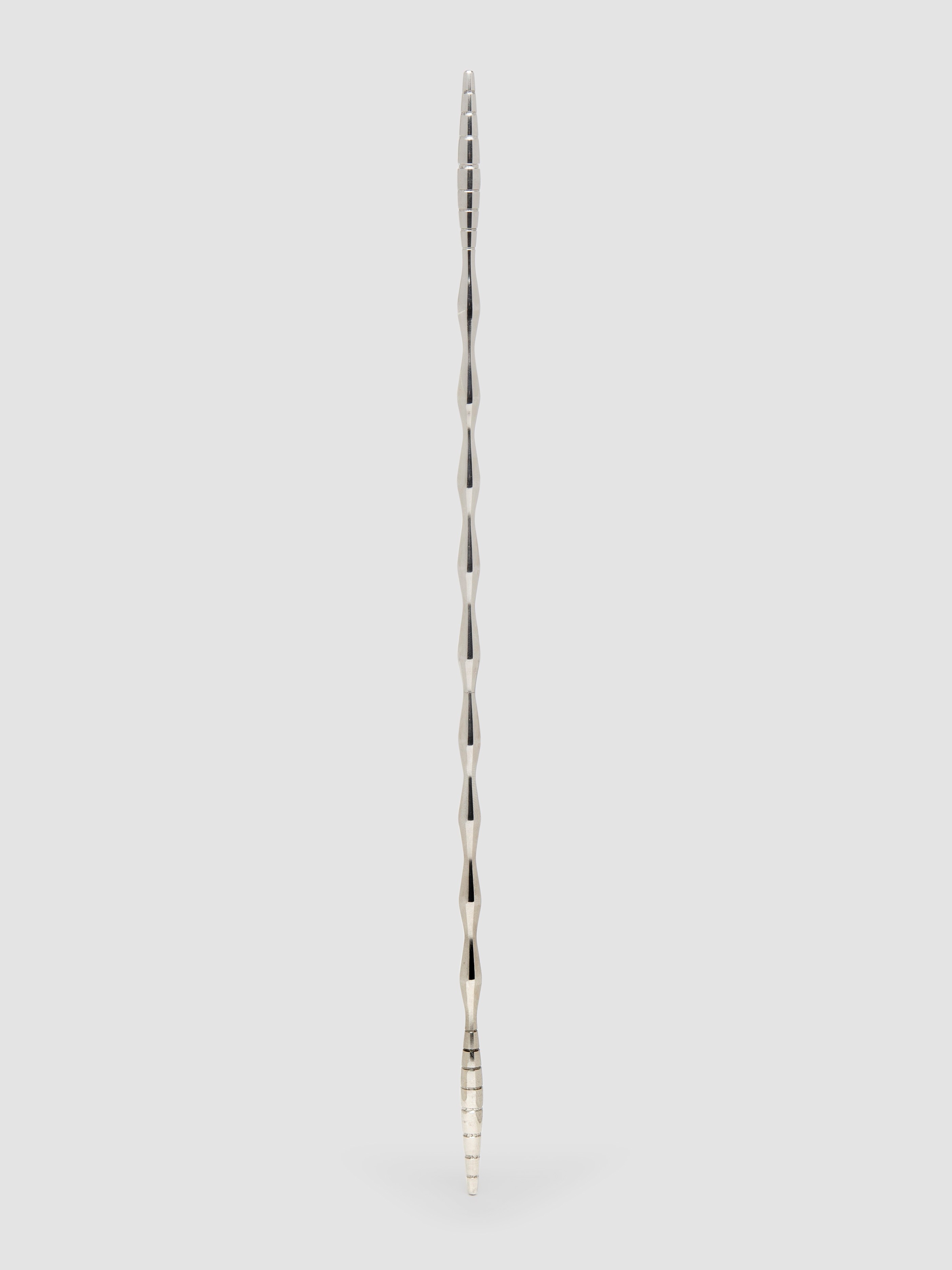 - Long, wavy stainless steel urethral sound for deep urethral play