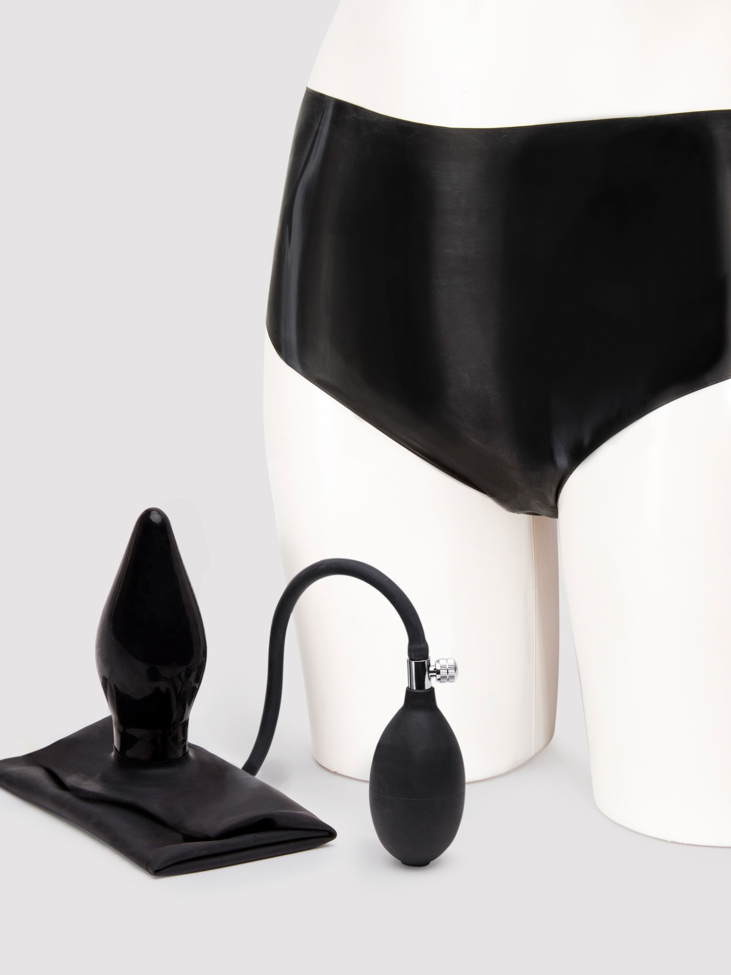 - Latex underwear for men with built-in inflatable butt plug for anal pleasure