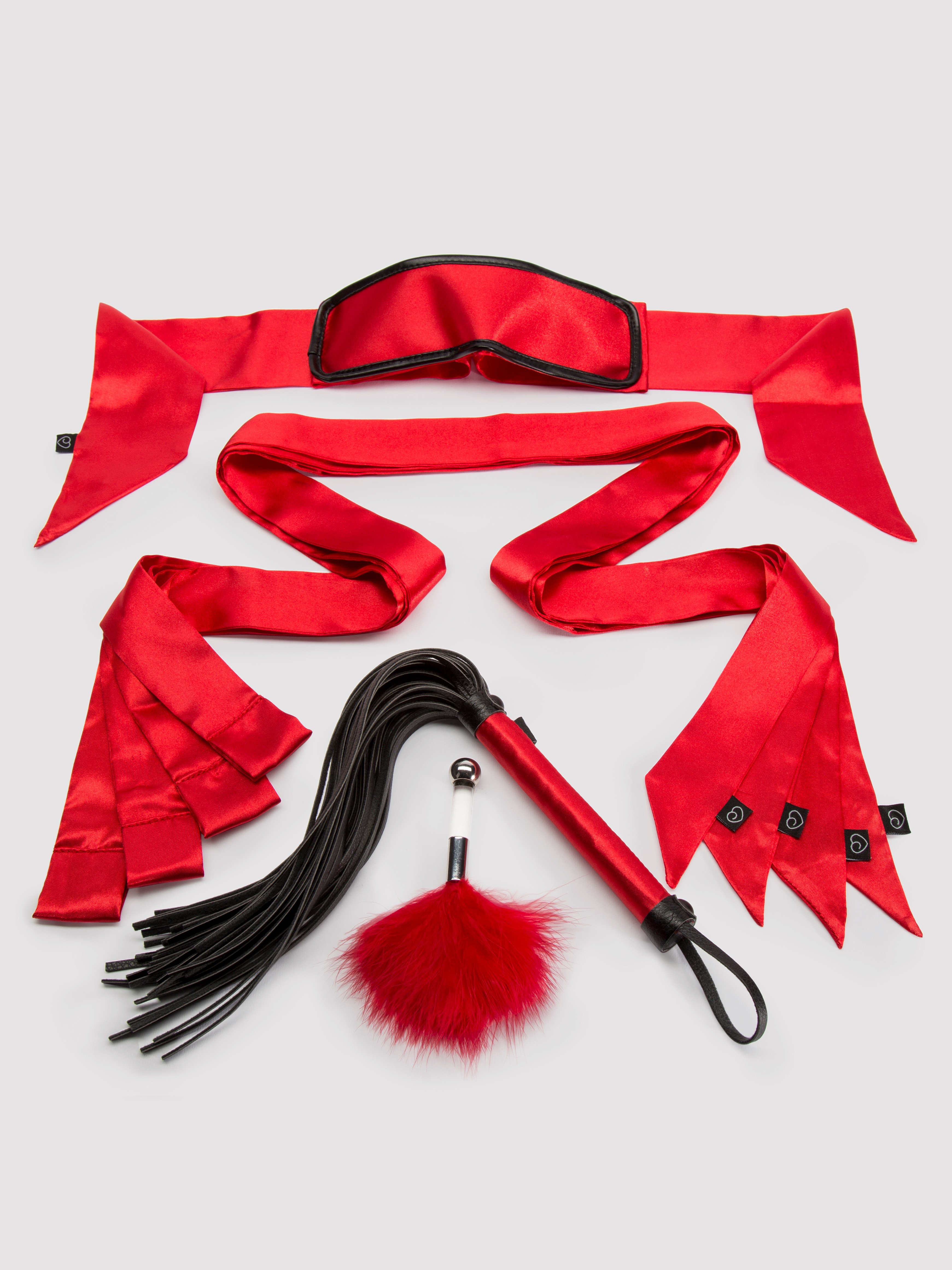 Tickle, flog and spank to your heart's content with this collection of BDSM must-haves. Chosen by us to satisfy you, we've compiled some of our best-selling S&M gear to make bondage games a cinch. Includes a blindfold, tickler, flogger and restraints.