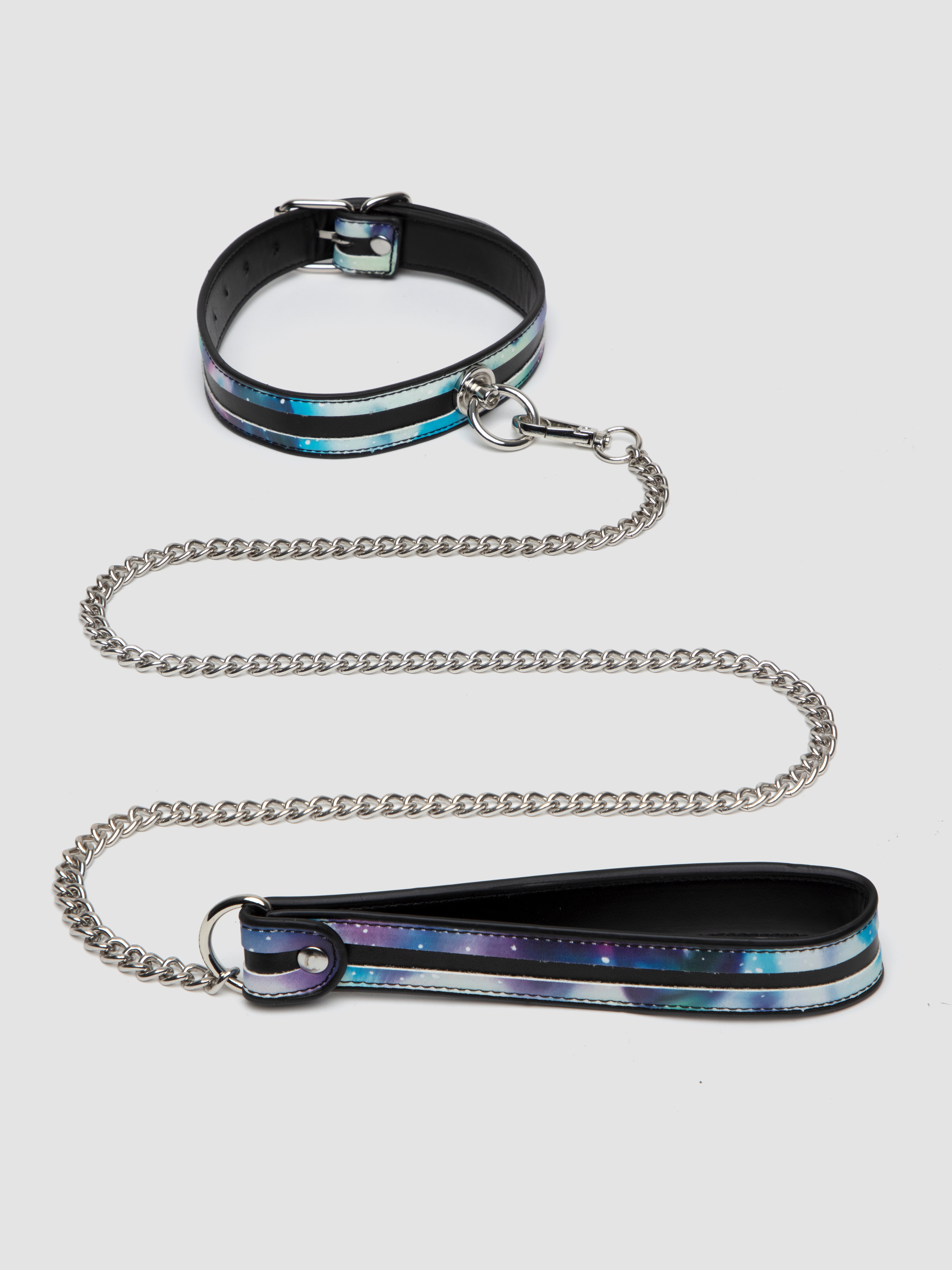 - Cosmic print faux leather collar and lead for a fun addition to BDSM play
