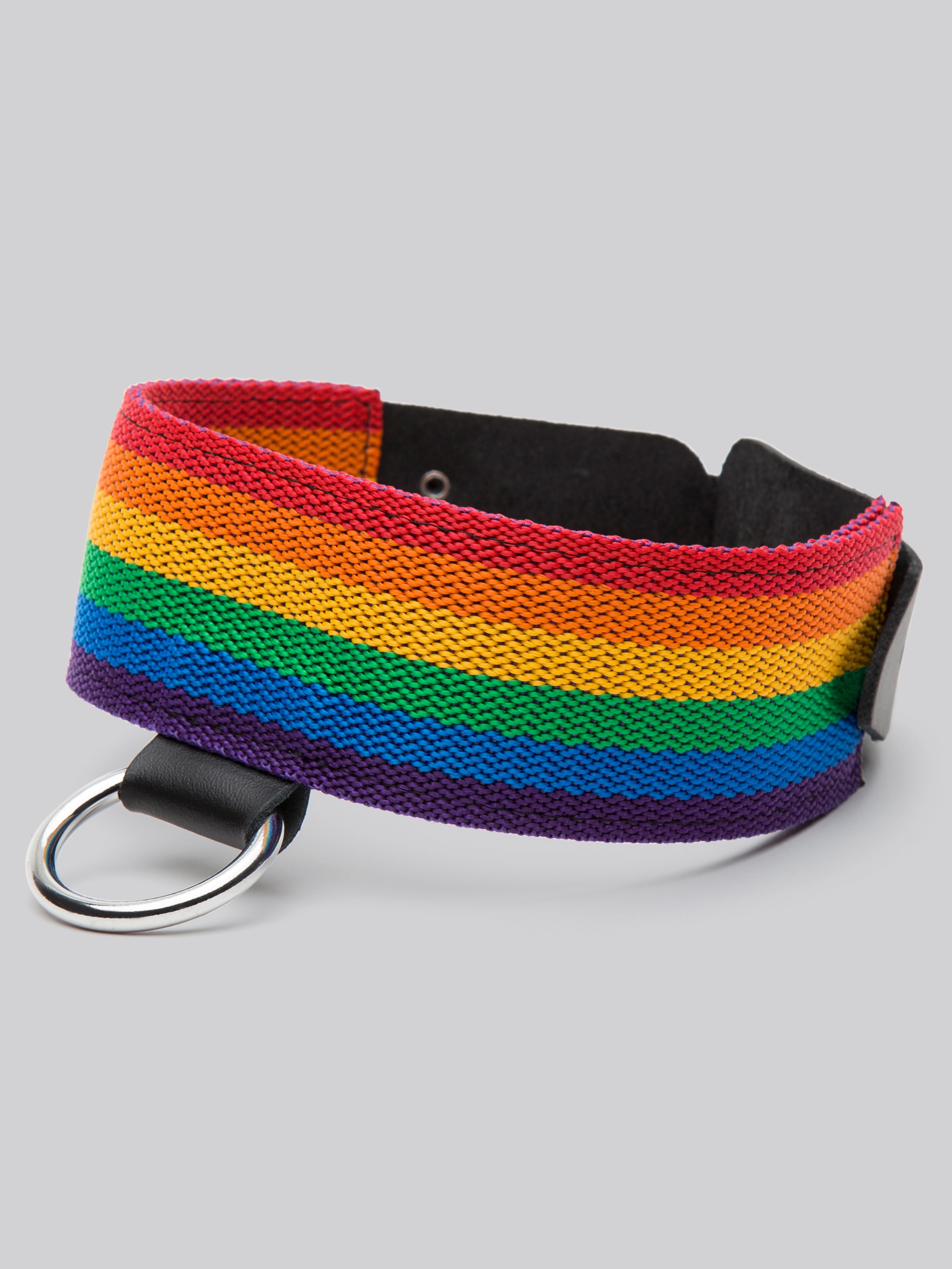 Enjoy a full spectrum of bondage thrills with this leather and rainbow bondage collar. Fully adjustable for a flawless fit with a metal O-ring for attaching your own choice of lead, wear in or out of the bedroom to add a flash of colour to any occasion.
