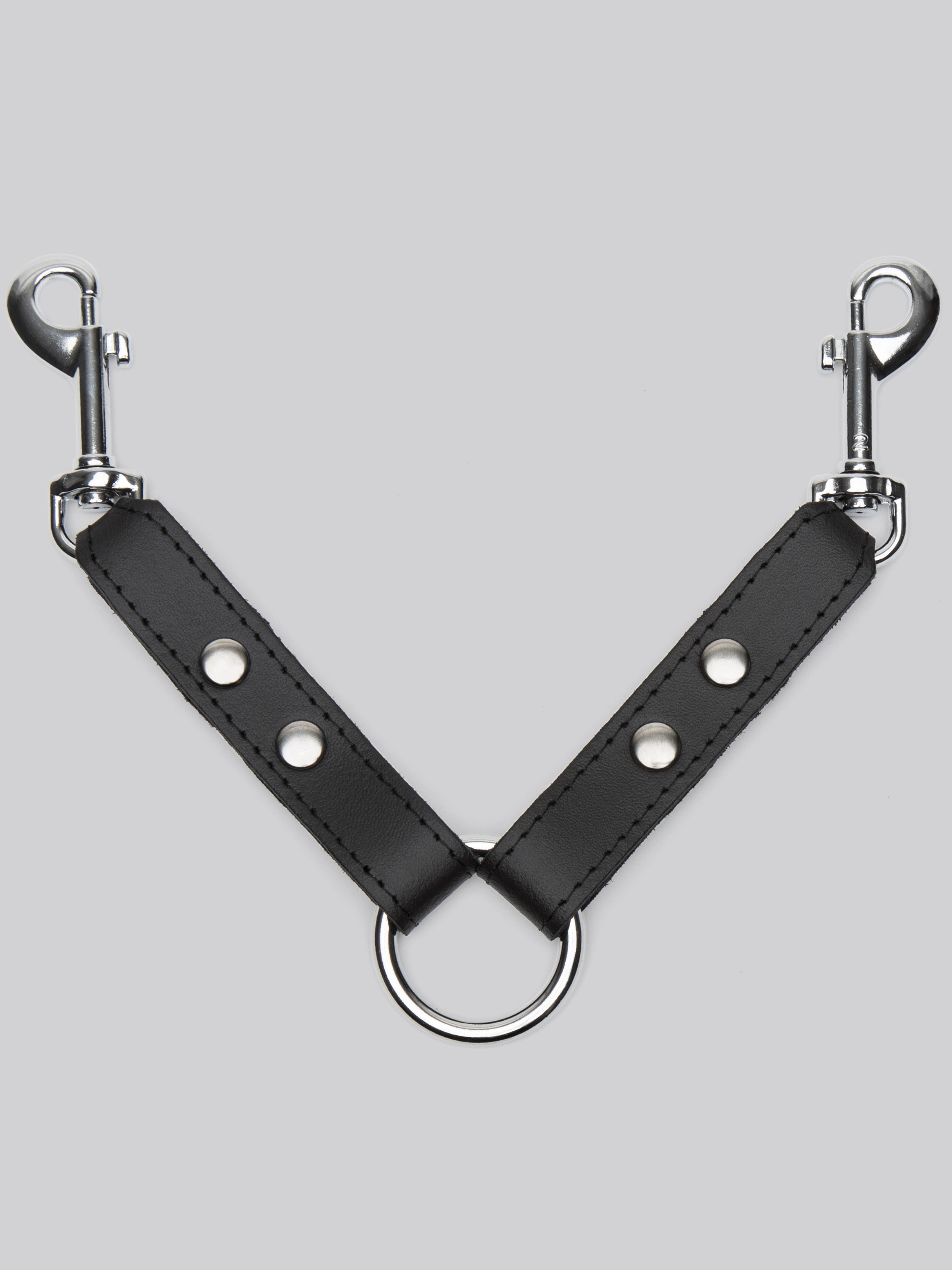 An absolute necessity for fans of restraint play, the DOMINIX Deluxe Leather Connector clips onto any bondage toy for customised pleasure. With a central O-ring, 2 strong leather straps and quick-release clips.