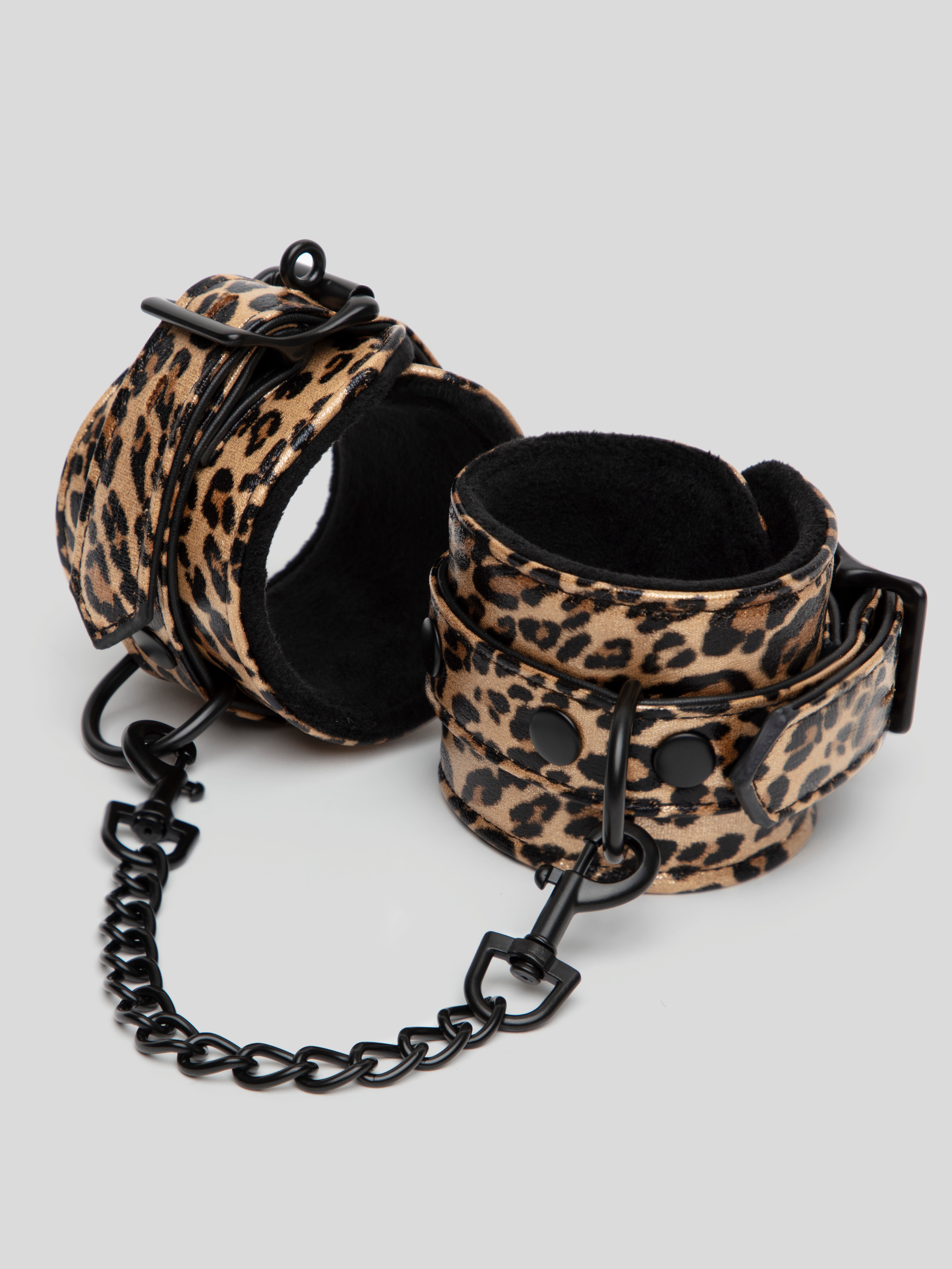 - Adjustable leopard print wrist cuffs for stylish and secure bondage play