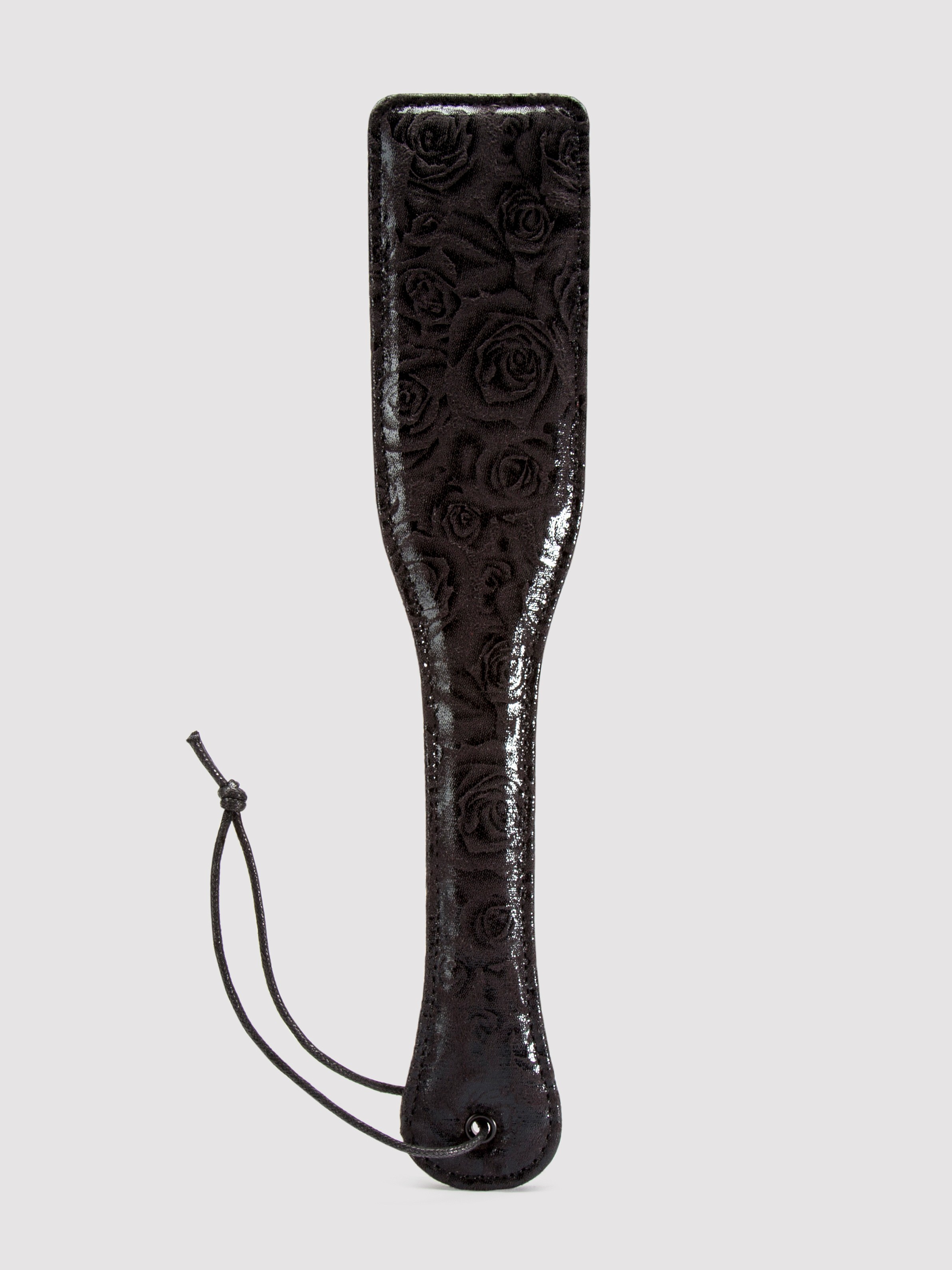 While the broad, slightly flexible spanking surface delivers scintillating slaps and orgasmic thrills, its sturdy handle with wrist loop gives you the power to assert your dominance with confidence. Choose the rose-patterned side for muffled thuds and soothing strokes, or the smooth leather surface for audible spanks that leave a mark.