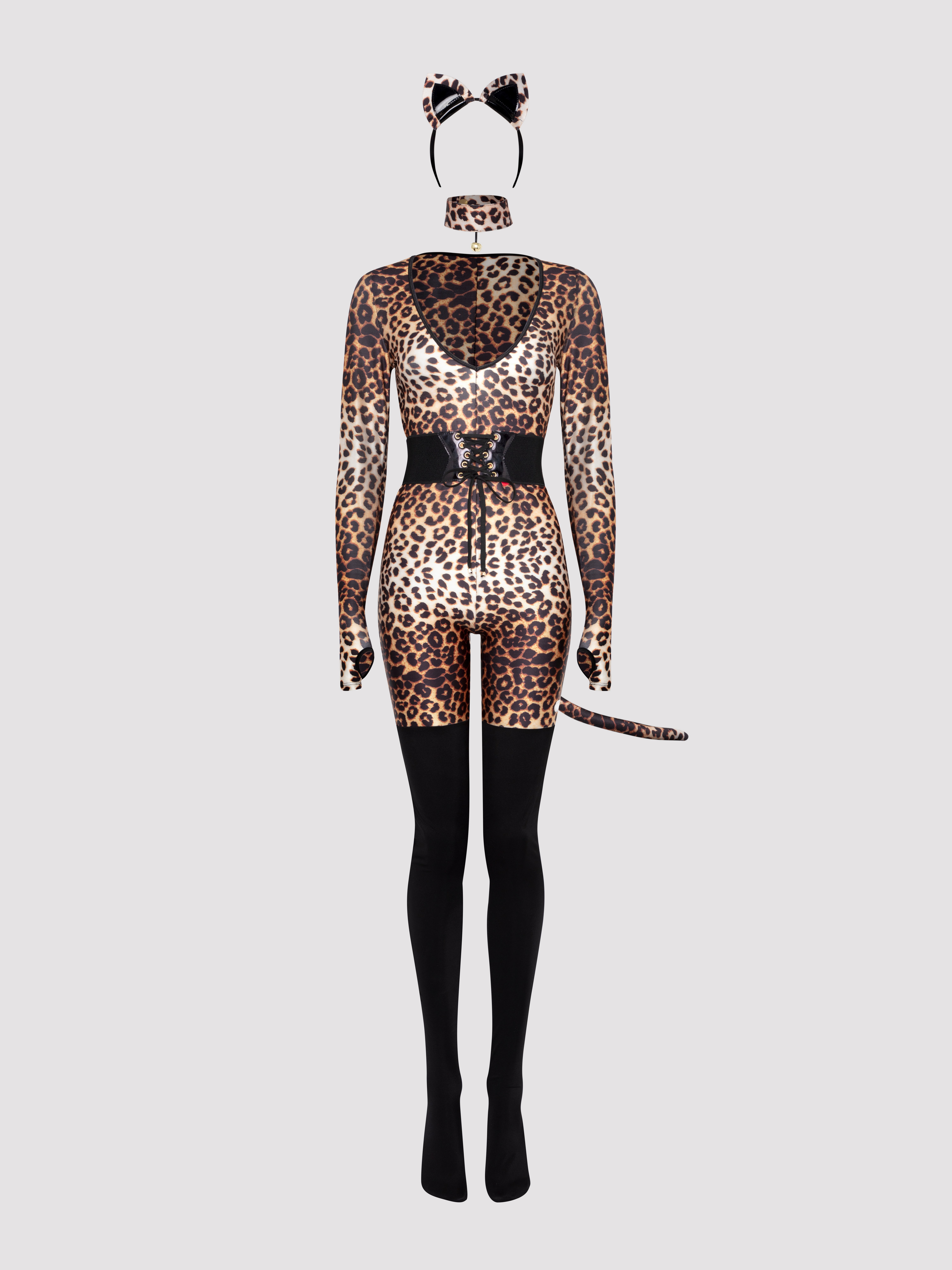 The catsuit itself is made from a soft and stretchy leopard print fabric, which is super comfortable and ideal for a full night of mischief.