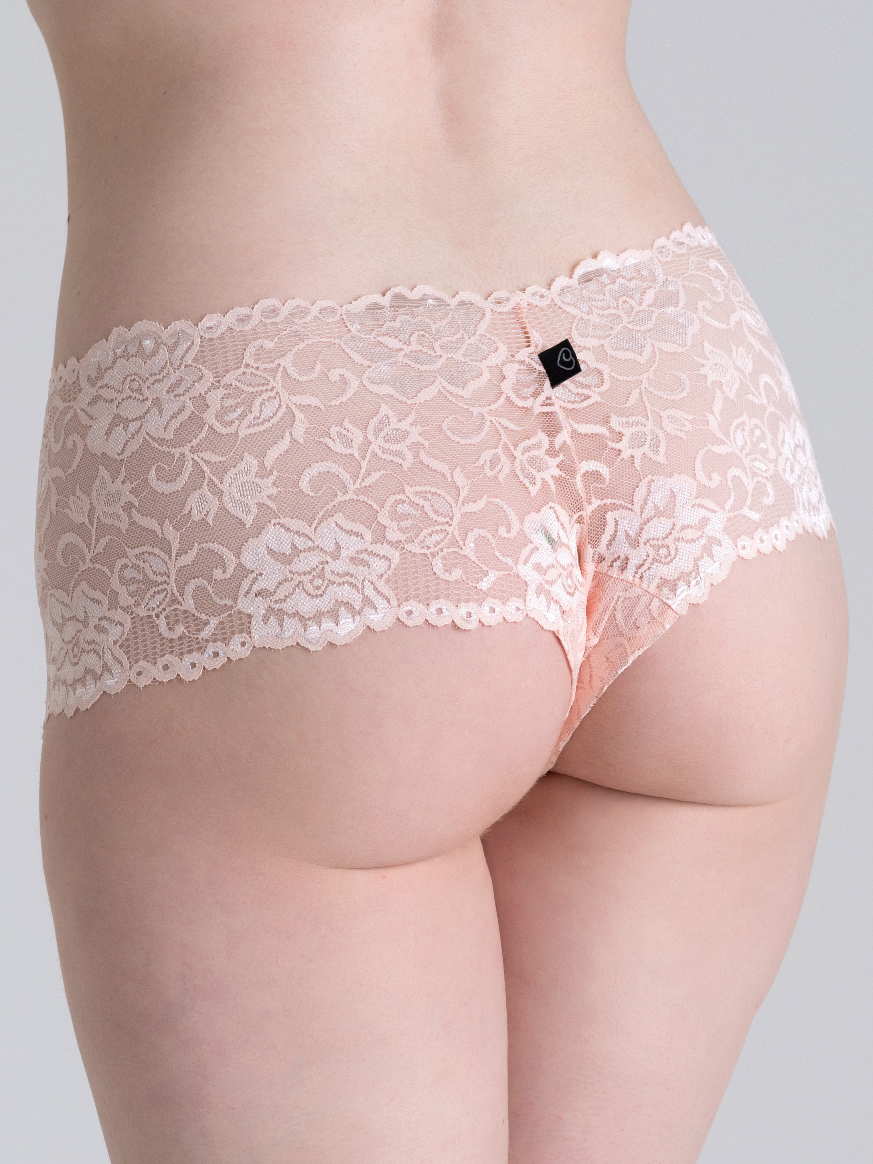 Simultaneously covering all while leaving nothing to the imagination, the sheer lace material with scalloped edges offers a feminine take on the French knicker-style shorts, while the smooth, no-waistband style won't spoil the line of your clothes on top.