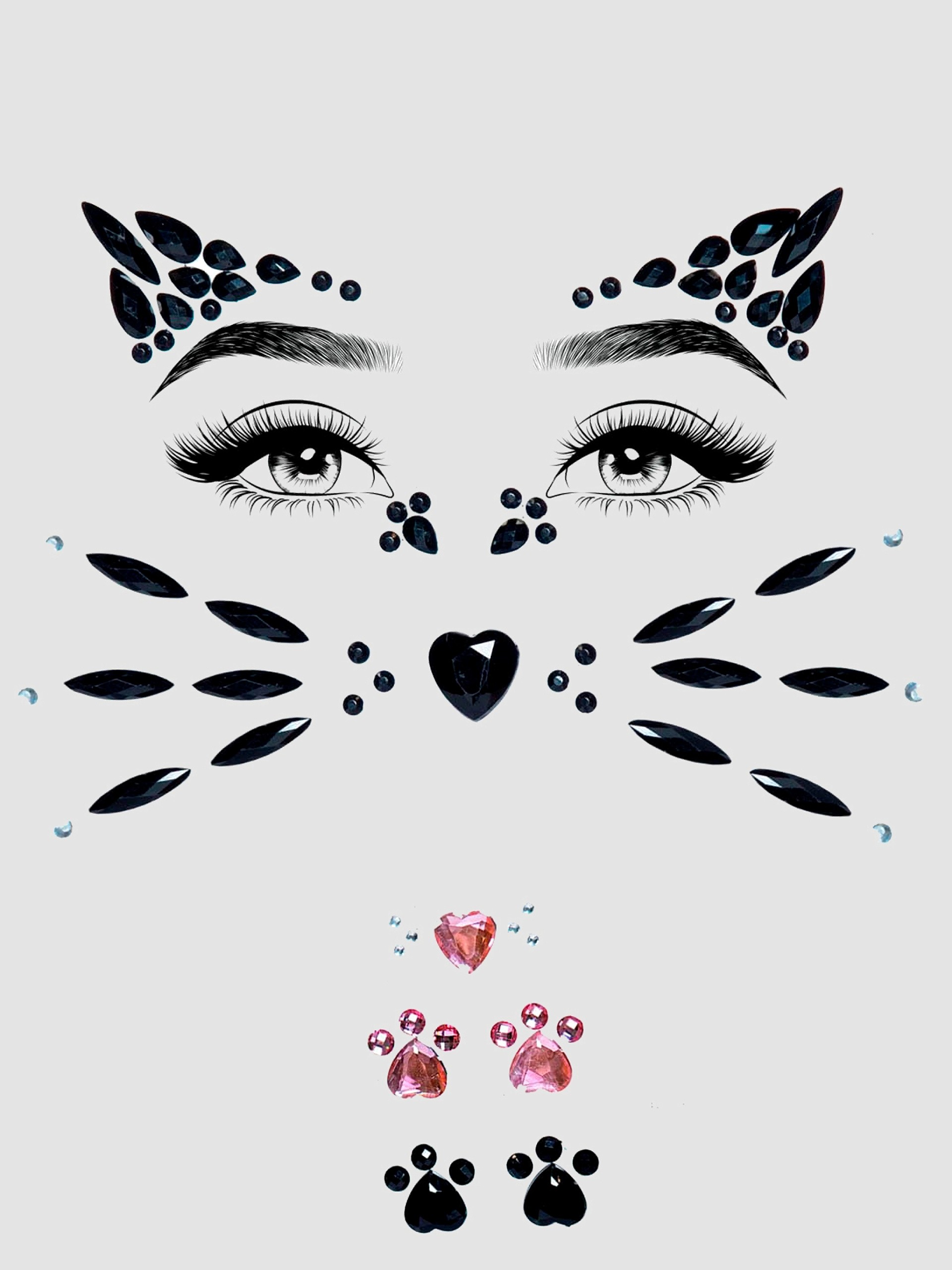 - Self-adhesive face jewels for adding the finishing touch to your cat costume