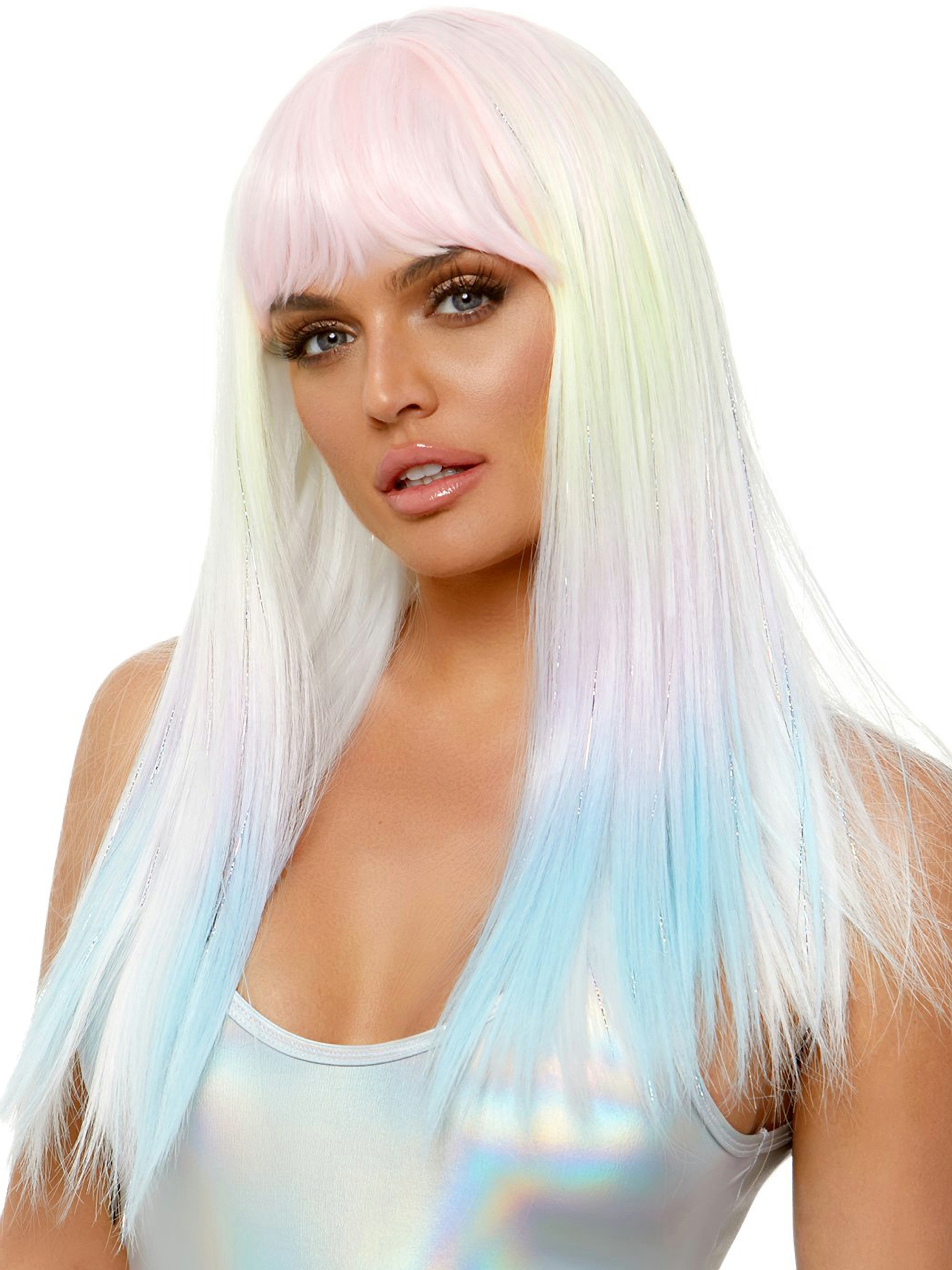 Give your mane a Gaga-esque glow up with his multi-tonal pastel wig, perfect for a wild club night look, or a festival-ready unicorn costume. Wear this long, colourful wig on the dance floor and say ‘holo’ to its glow-in-the-dark, holographic beauty.
