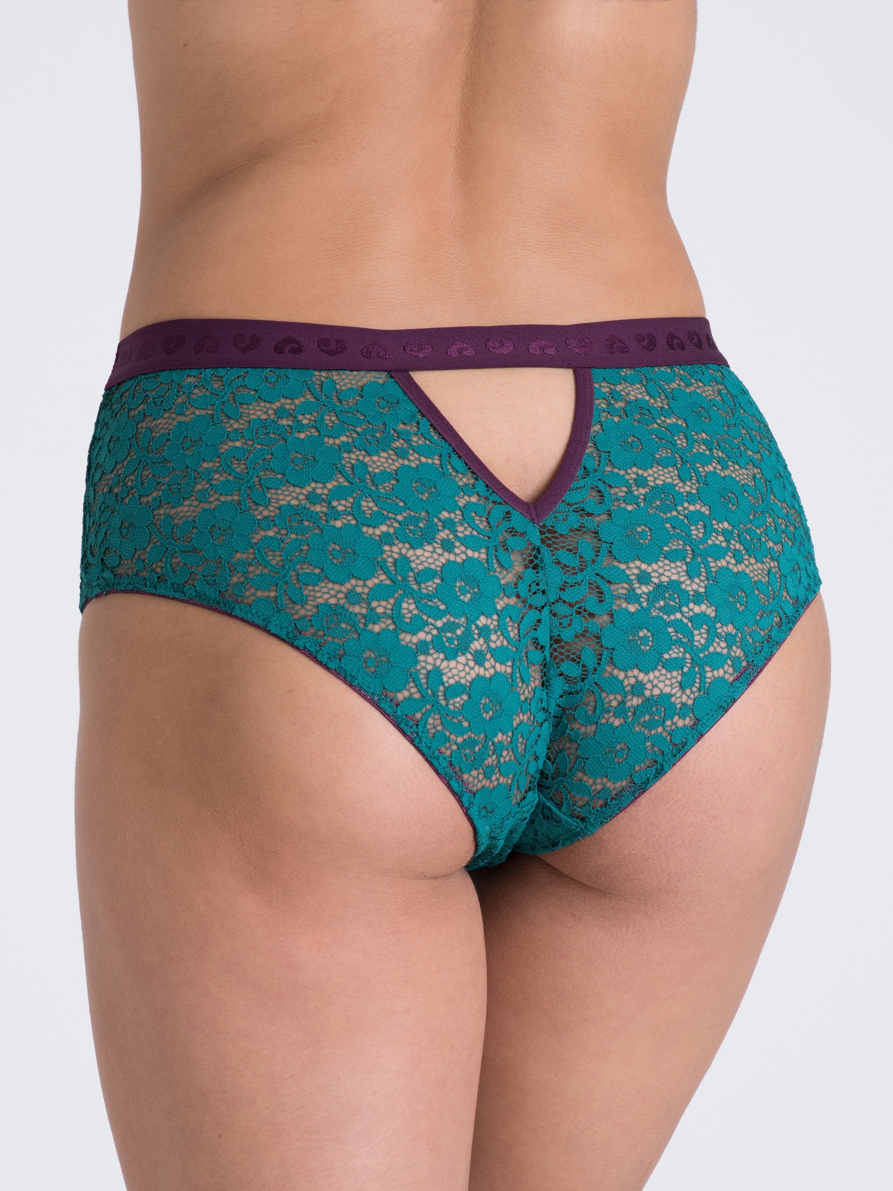 Go a little greener and get these cheeky lace shorts from our Mindful collection in your lingerie drawer, asap. Made from recycled materials, with a sexy keyhole back and a waistband adorned with hearts, these adorable undies are pants-down perfect.