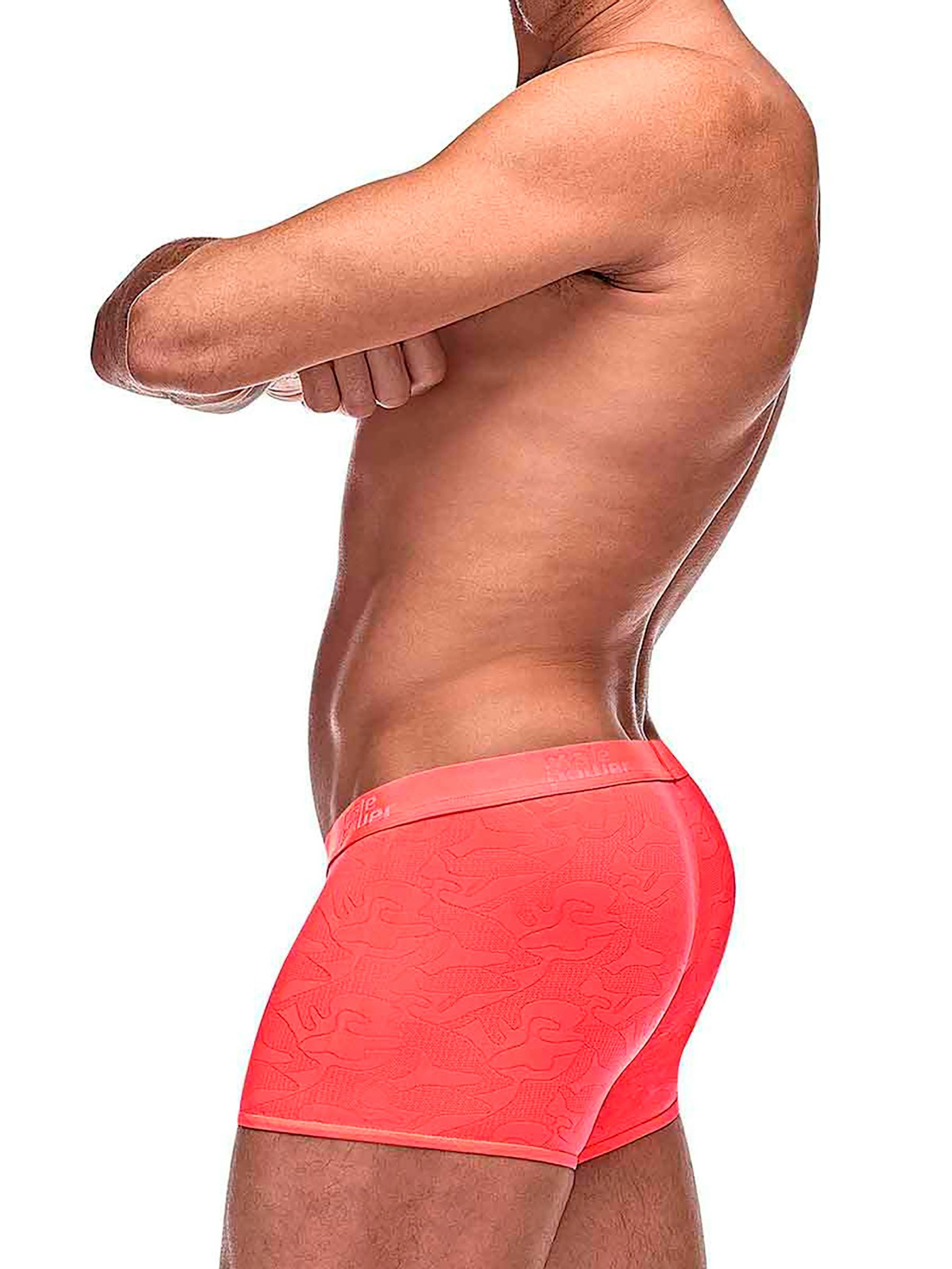 Wrap your buns in these super-sexy, semi-sheer coral boxer shorts. With a subtle, abstract swirl pattern and a waistband printed with the Male Power logo, these eye-poppingly bright undies will put those 'tighty whities' to shame.