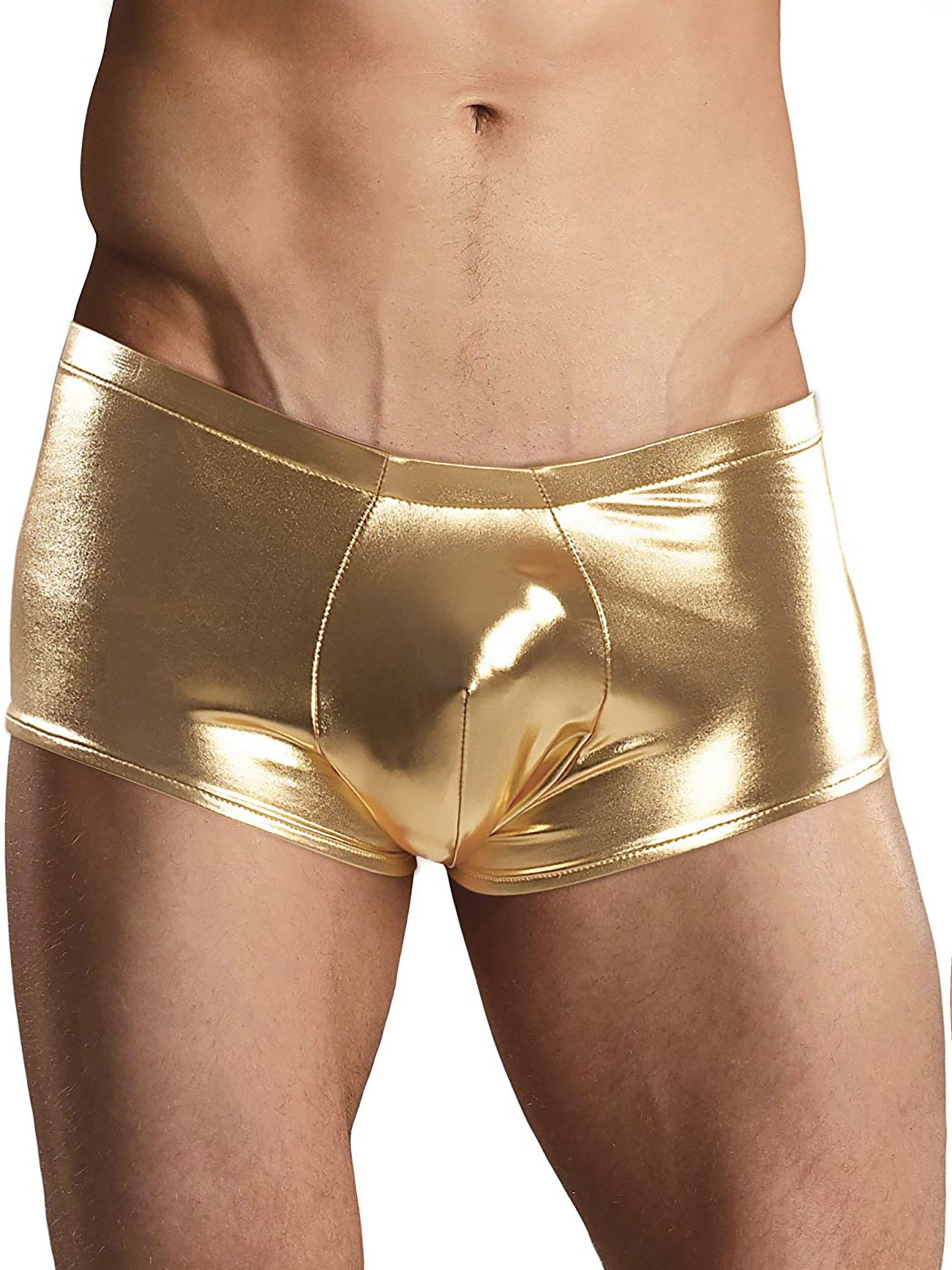 - Low-rise metallic gold boxer shorts for a seductive bedroom look