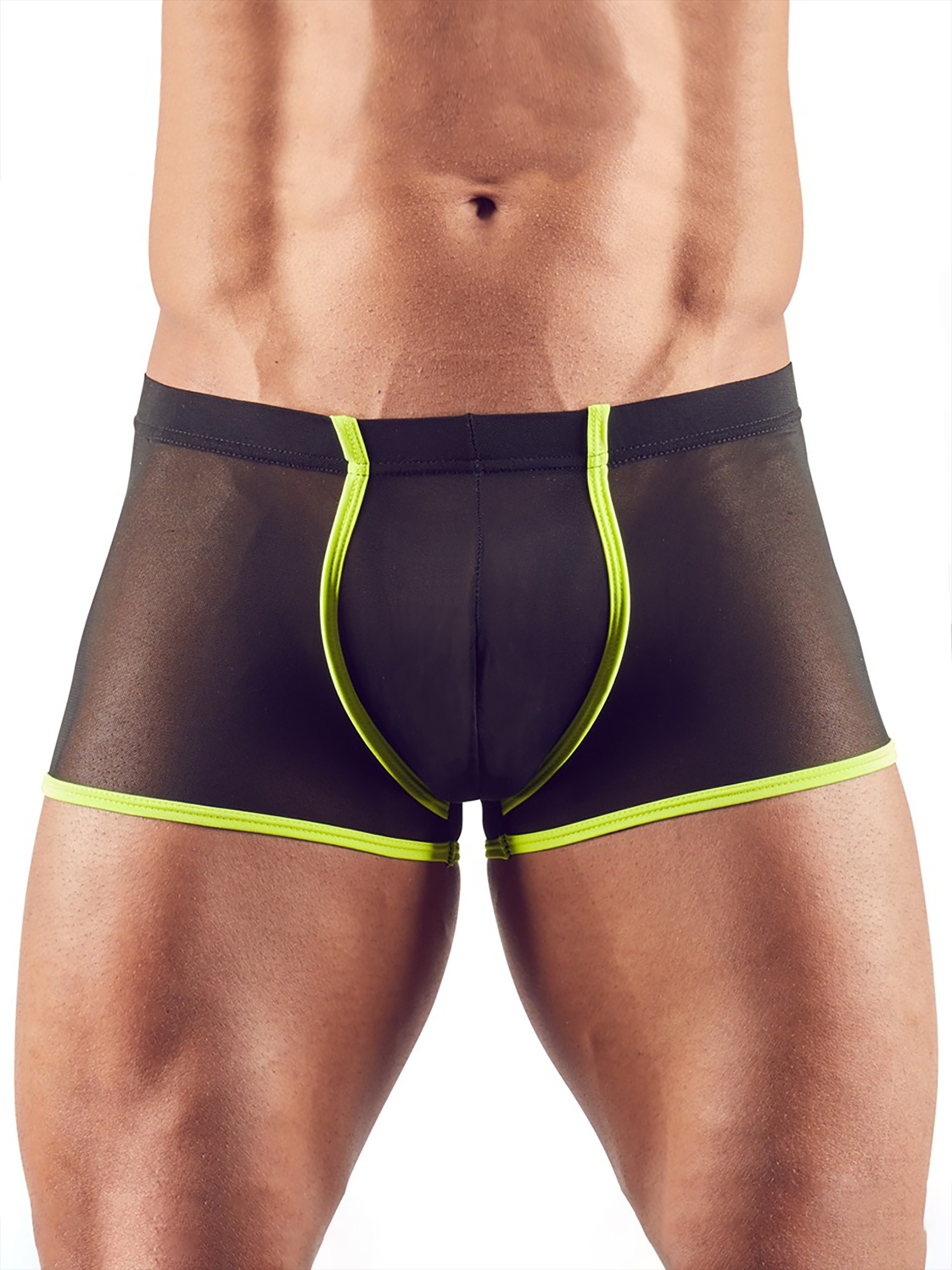 Holy smoke! Are these boxers for real?! Super-sheer and revealing to show off your cheeks and package, they feature neon green detailing to draw those eyes exactly where you want them. There you have it – sex appeal with no hidden messages.