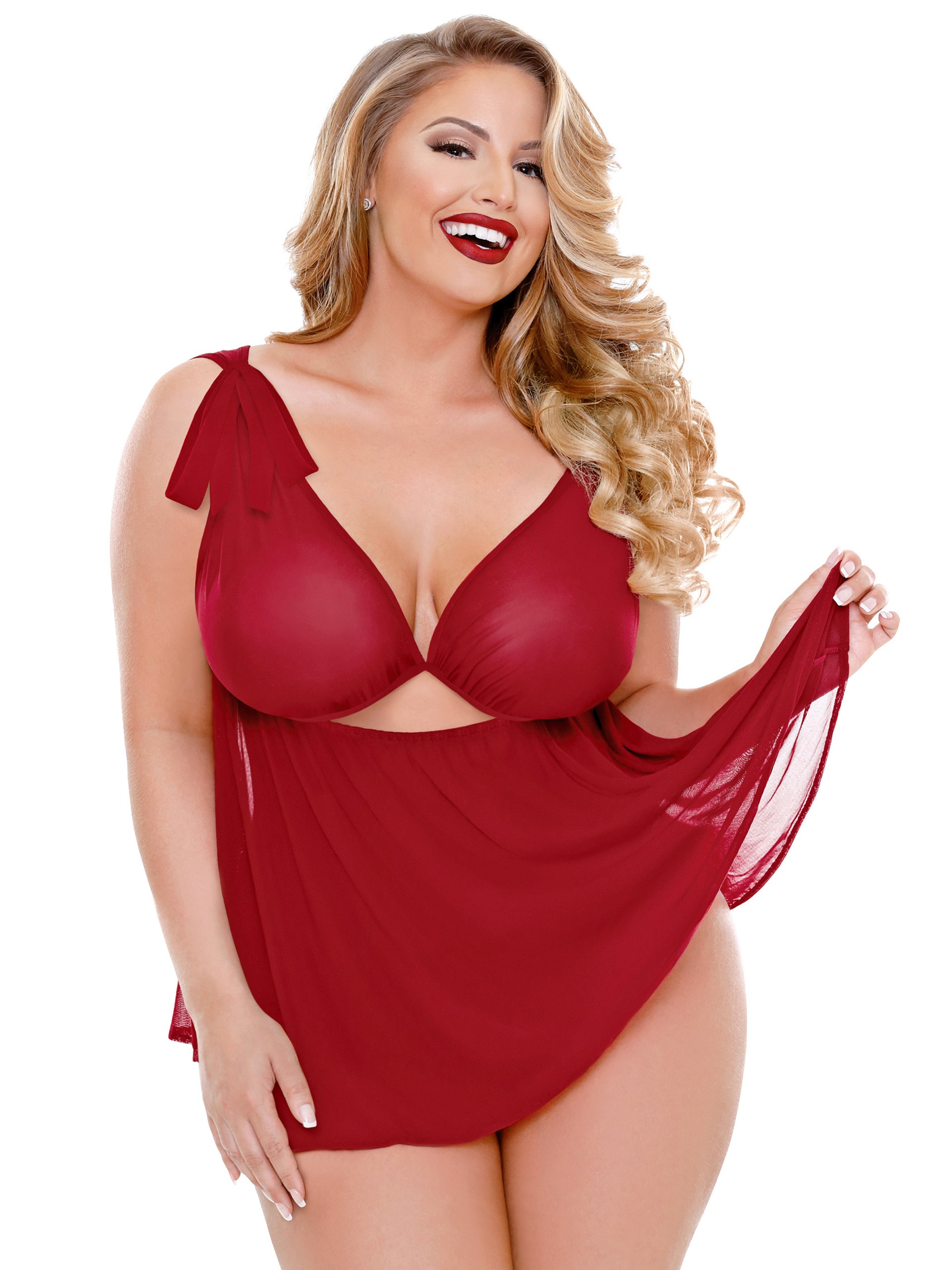 Fantasy Curve Plus Size Red Cut Out Babydoll Set
