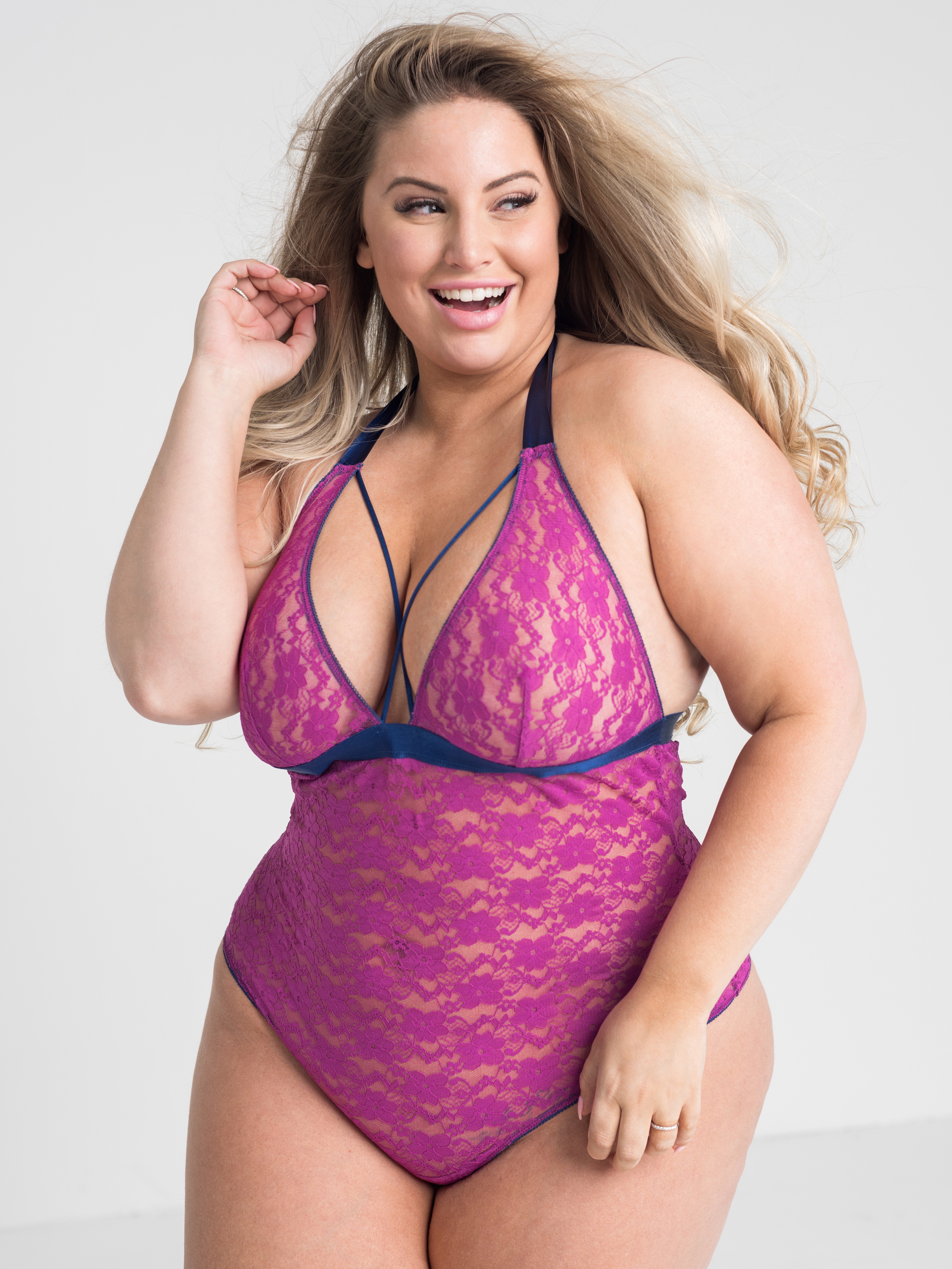 Lovehoney Plus Size Free Spirit Pink Lace Strappy Body