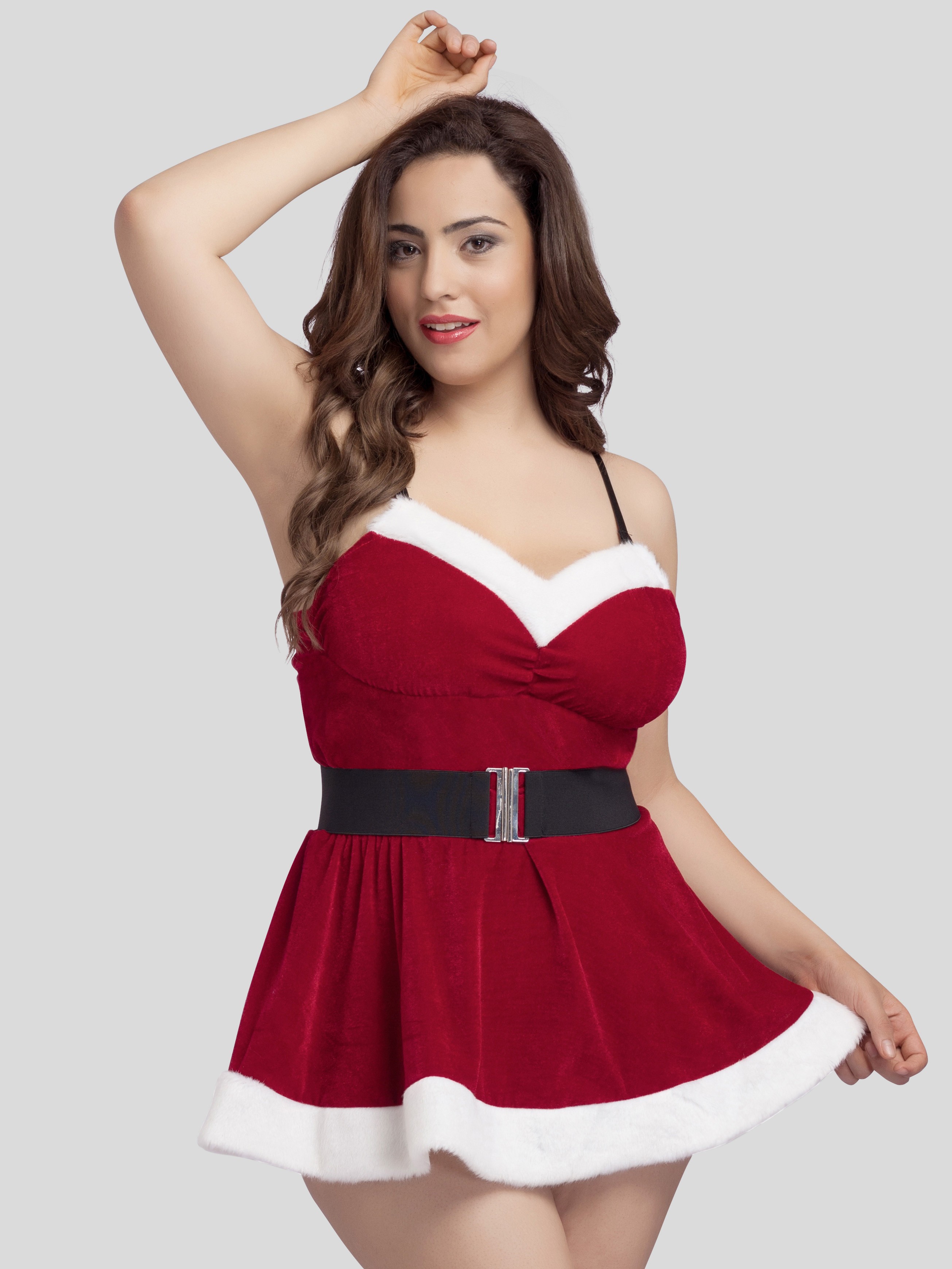 Wrap the belt around your waist to enhance your hourglass silhouette, then complete your yuletide look by uniting this sexy Christmas costume with hold-ups and a Santa hat.