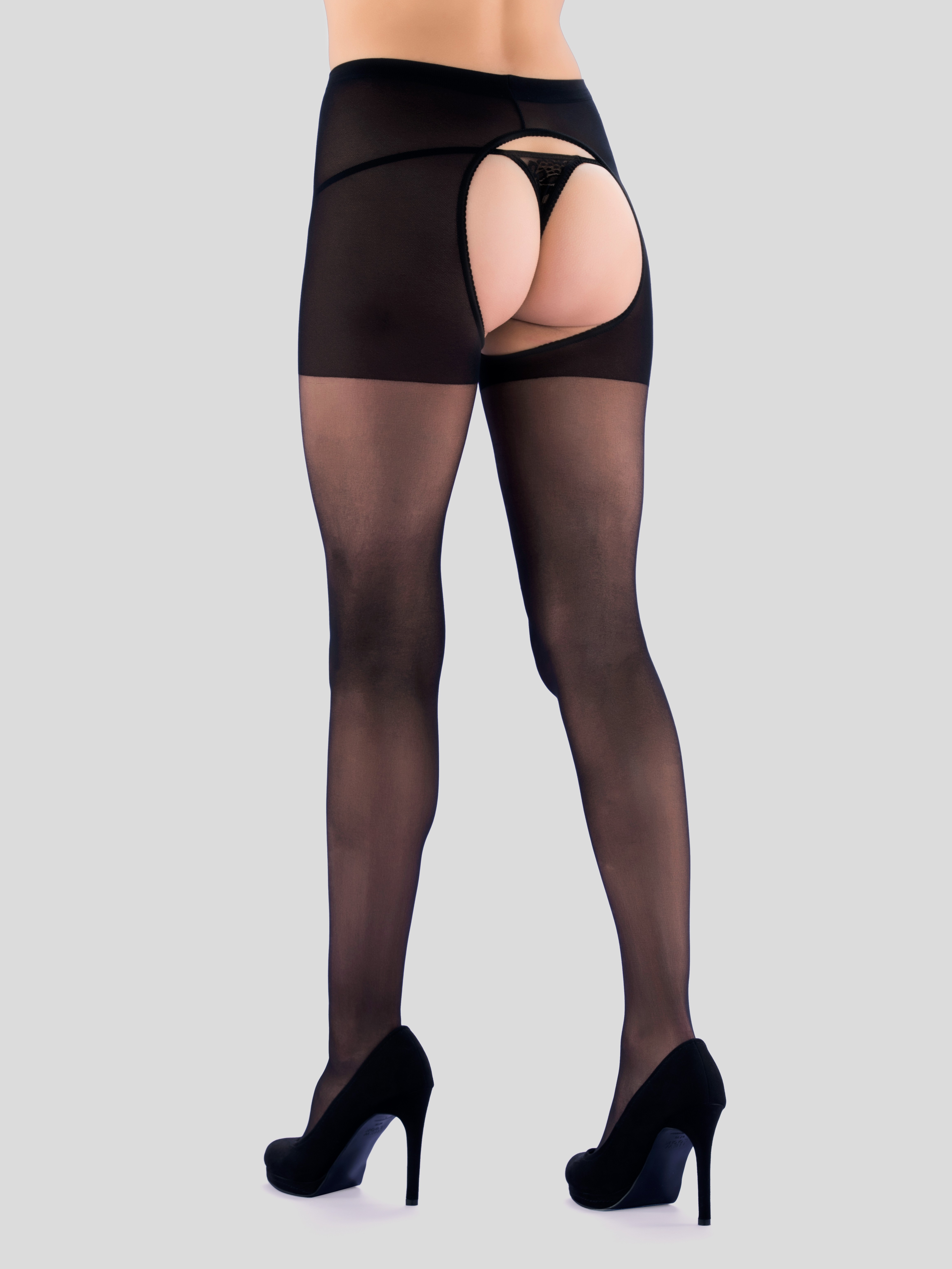 Get the look (and fun) of stockings with the comfort and practicality of tights thanks to these crotchless numbers. Made from semi-sheer black nylon that moulds to the shape of your legs, they're sleek and sexy enough to wear both day and night.