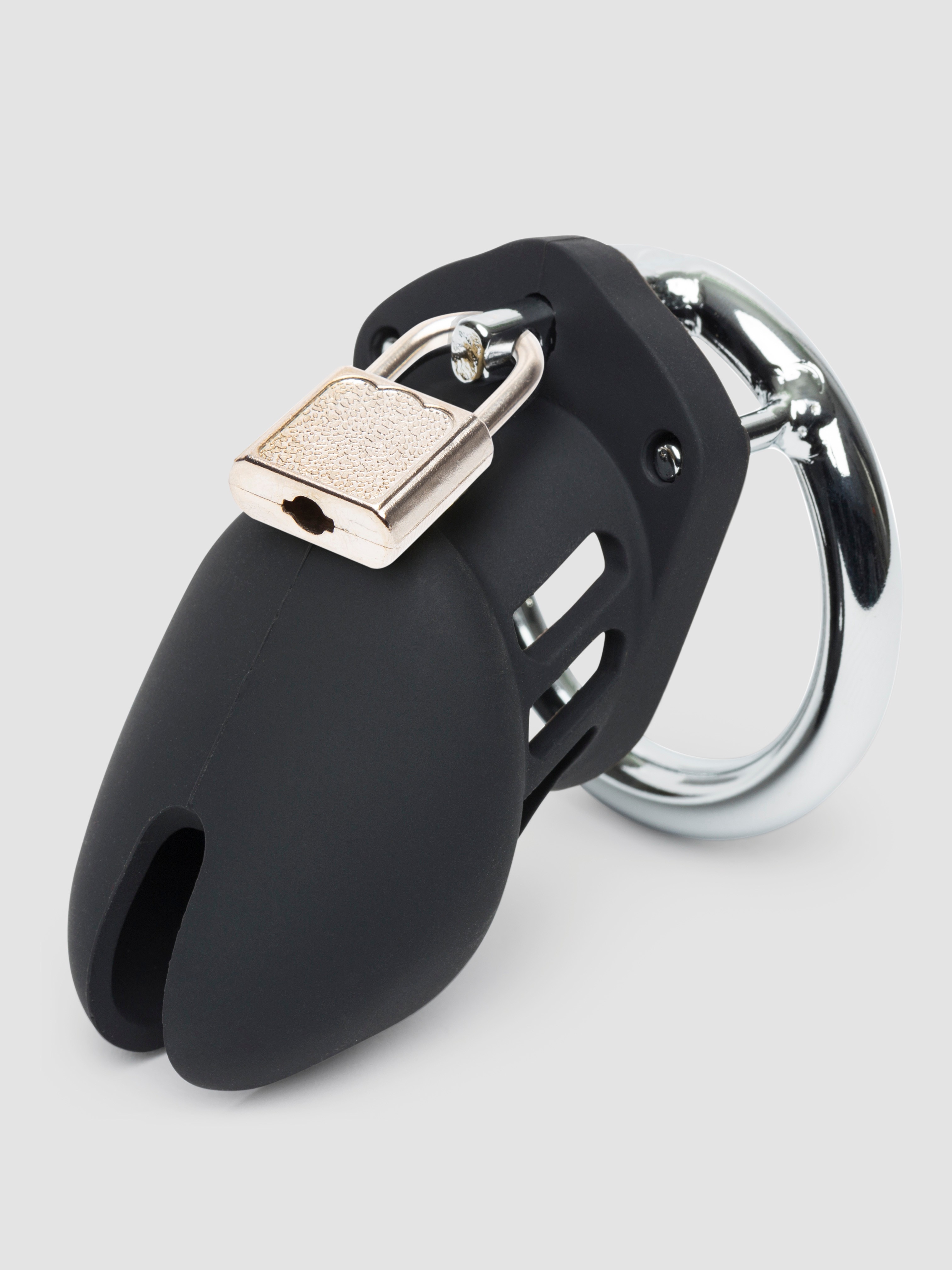 Be a cock locker, not a cock blocker, as you detain his love muscle in this sleek silicone sleeve. Simply slip the 3.5 inch cage over the steel ball ring and add the padlock closure to keep him under lock and key for as long as you decide.