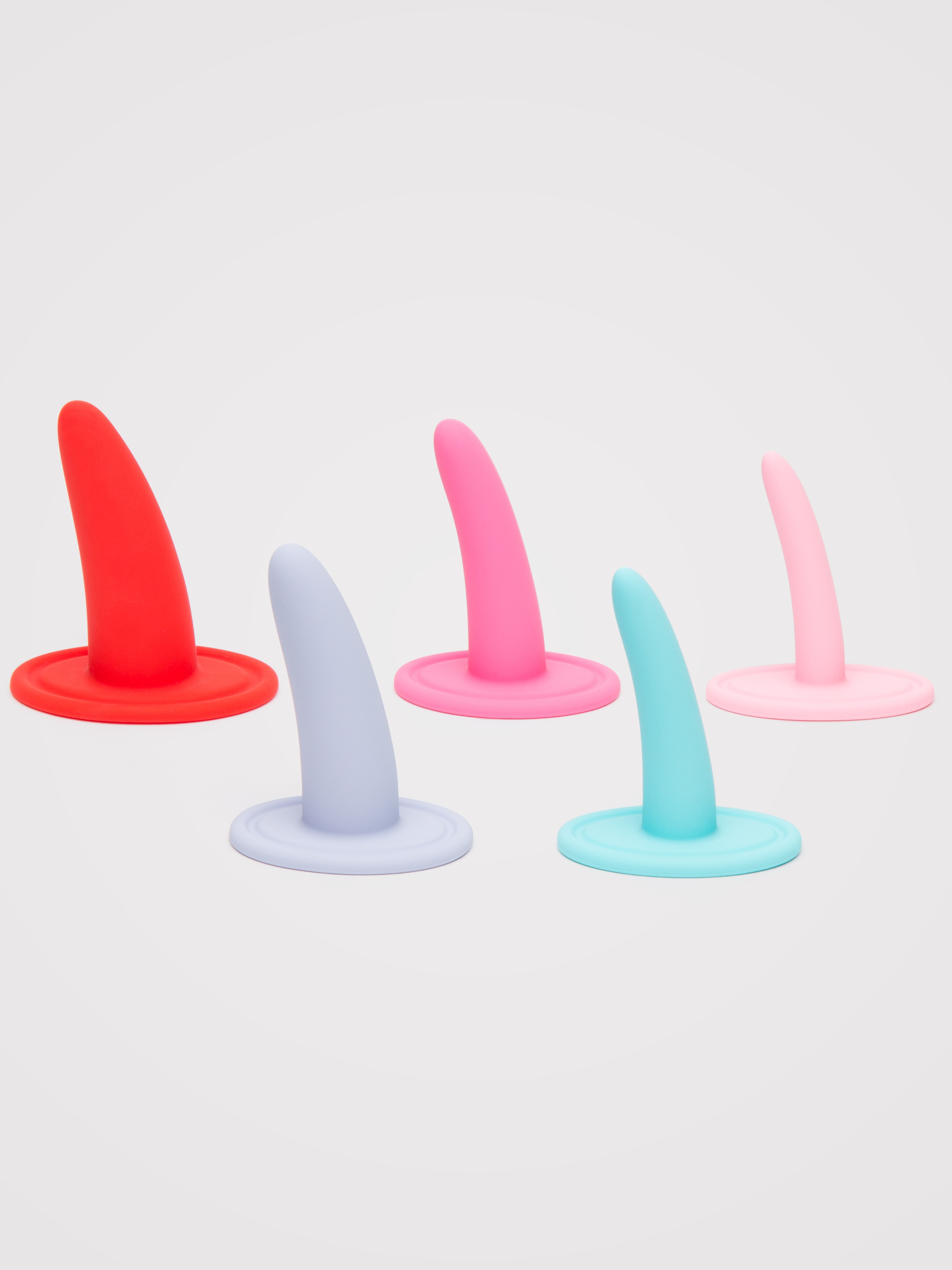 - Set of 5 smooth wearable silicone dilators, ranging in size for advancing vaginal exploration
