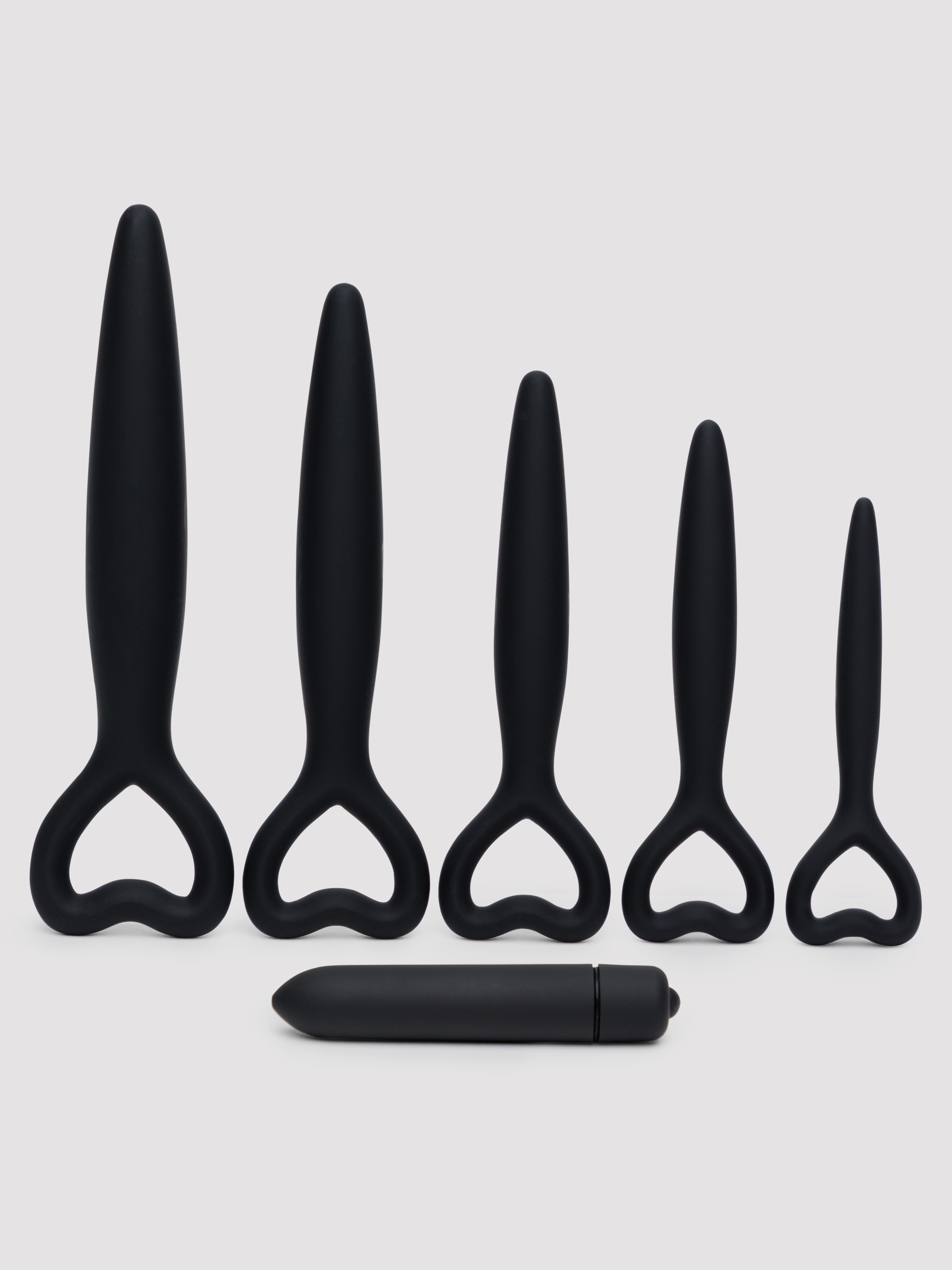 - Set of five silicone dilators with an included bullet vibe for comfortable vaginal exploration