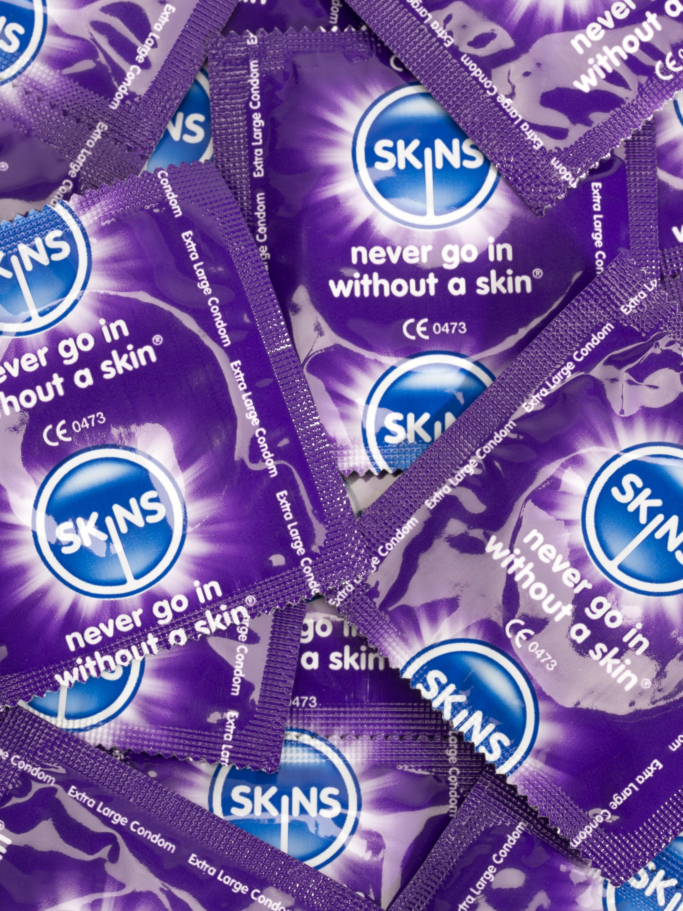 Make sure you never run out of the size that fits you best with this large pack of extra large condoms. Offering 100 of Skins' extra long and extra wide johnnies, this big bundle will keep you (and your partner) safe and comfortable again and again.