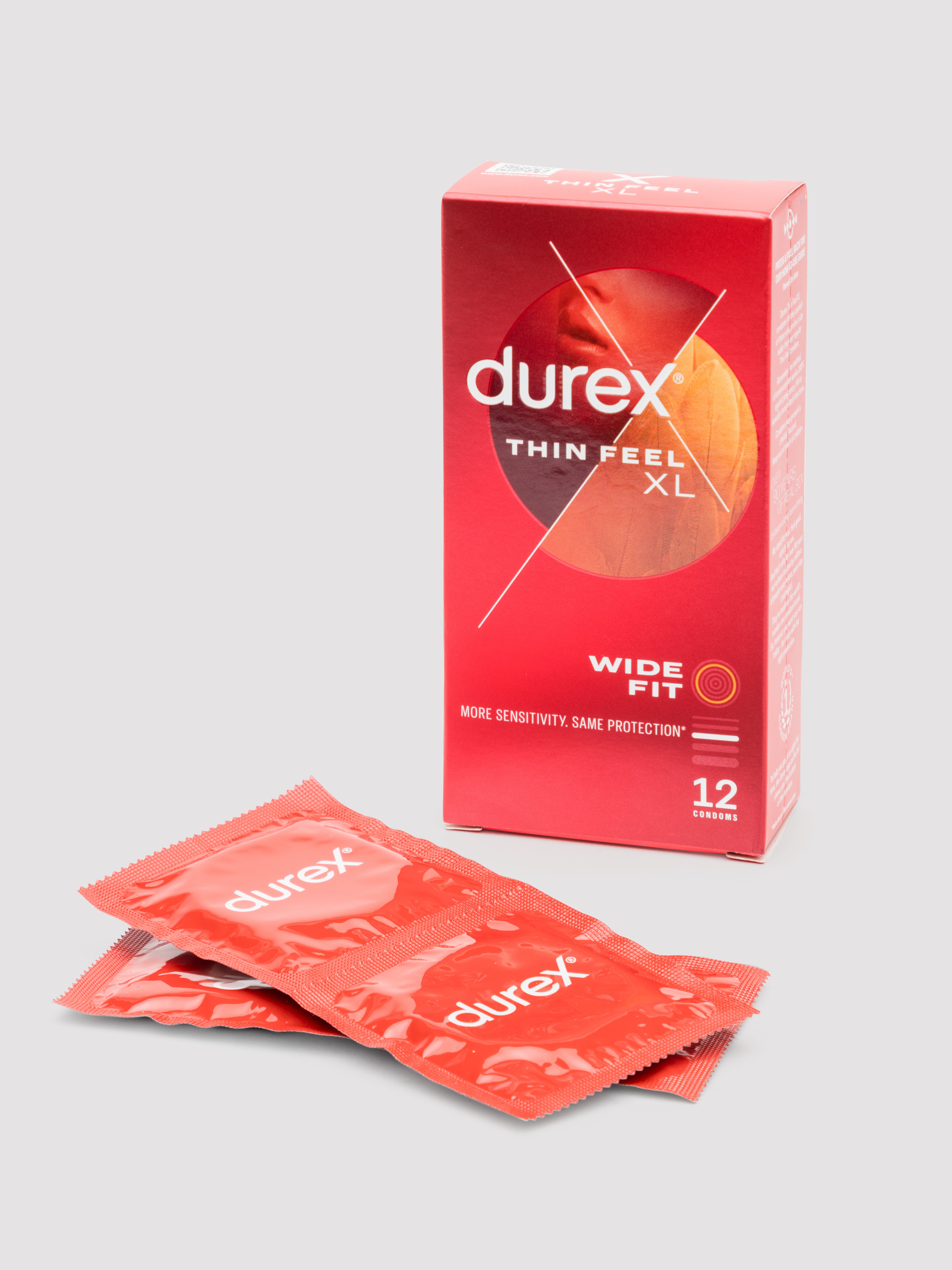 Get as close as possible while being as safe as possible with Durex's Thin Feel Wide Fit XL Condoms. Made from stretch-friendly natural rubber latex and layered with smooth silicone lube, these thin-but-strong 'doms are ideal for intimate encounters.