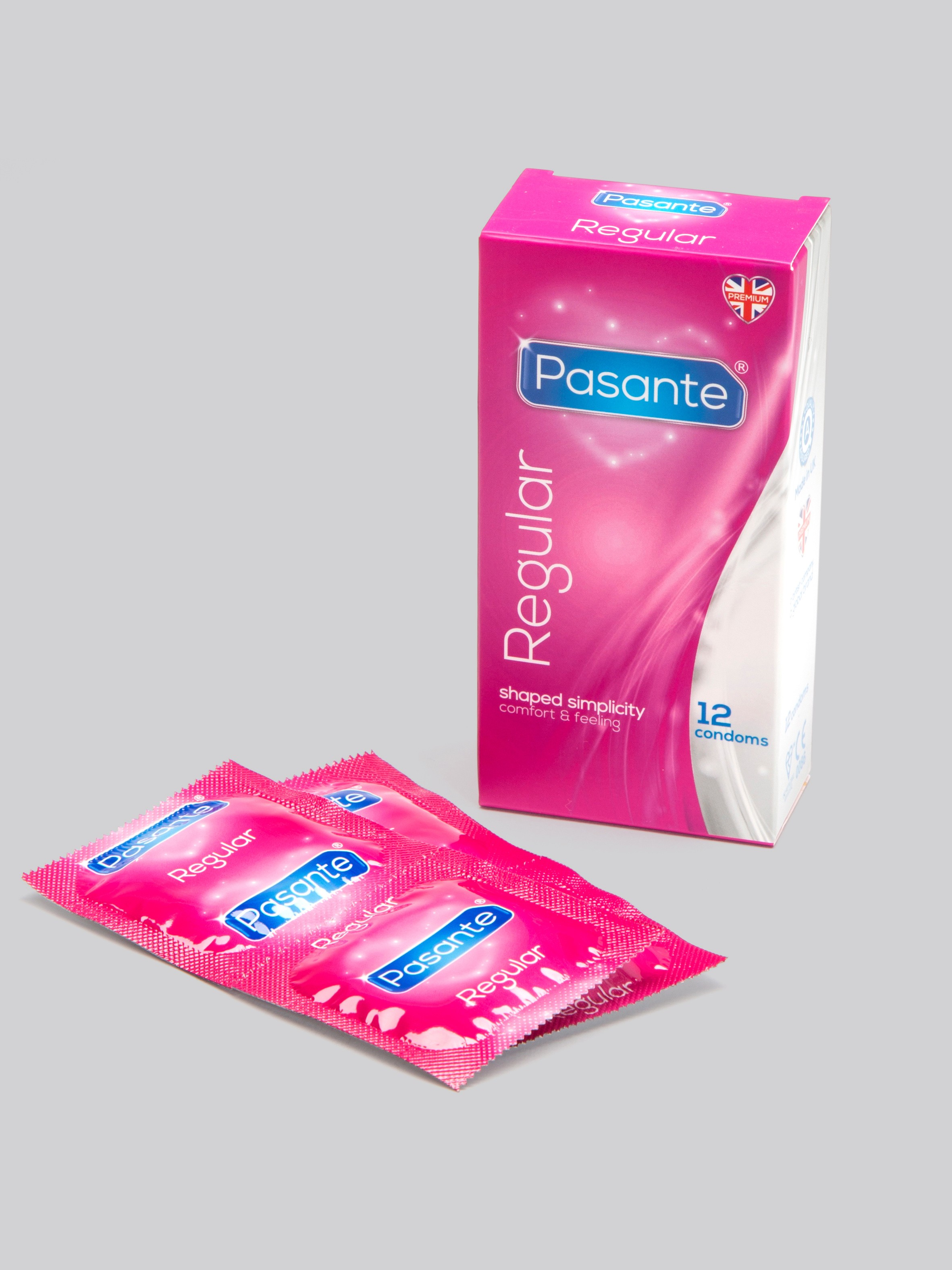 - 12 pack of regular fit latex condoms for protection from pregnancy and STIs