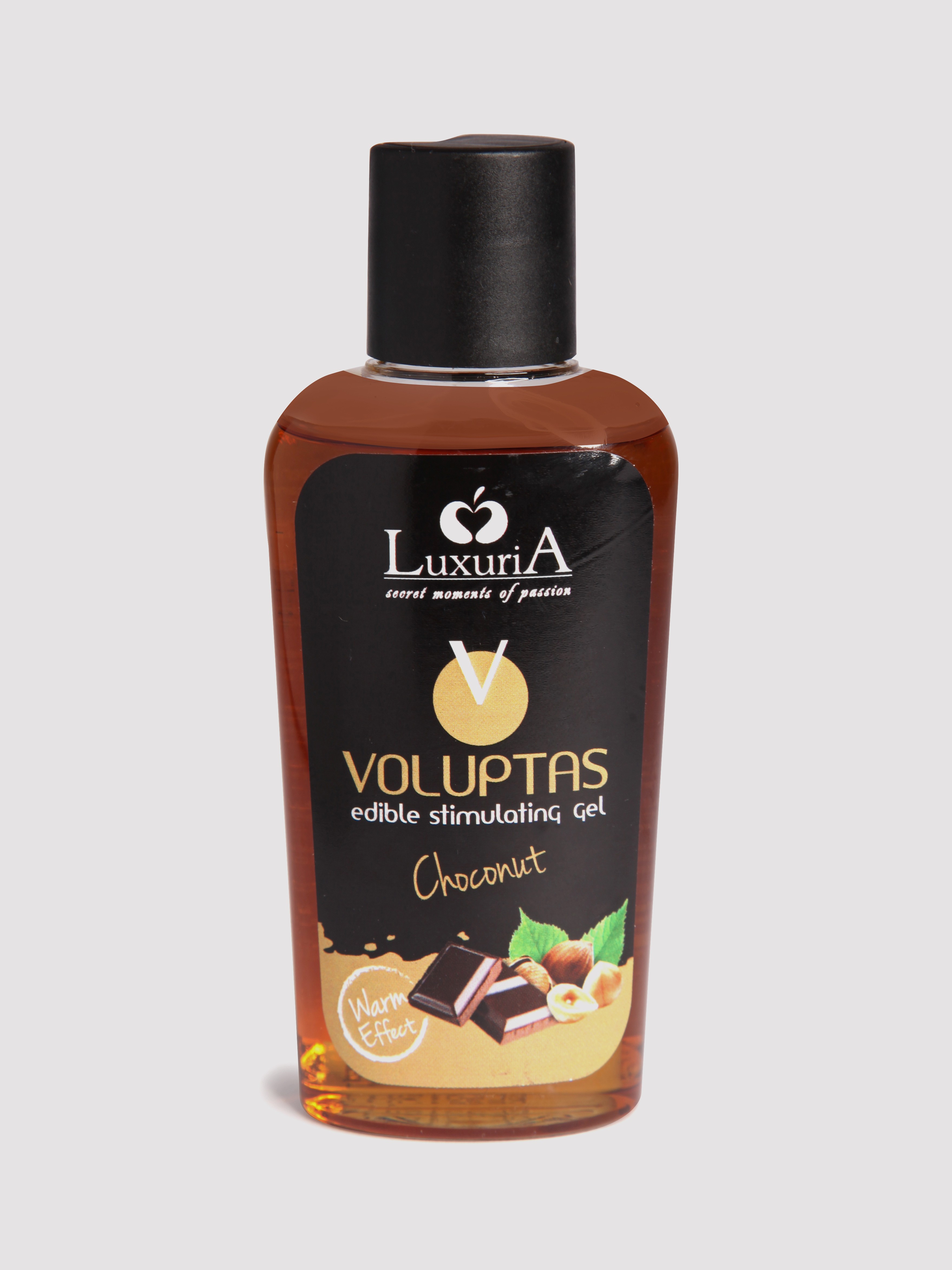 - Warming chocolate and hazelnut flavoured massage gel, perfect for massage, oral sex and foreplay