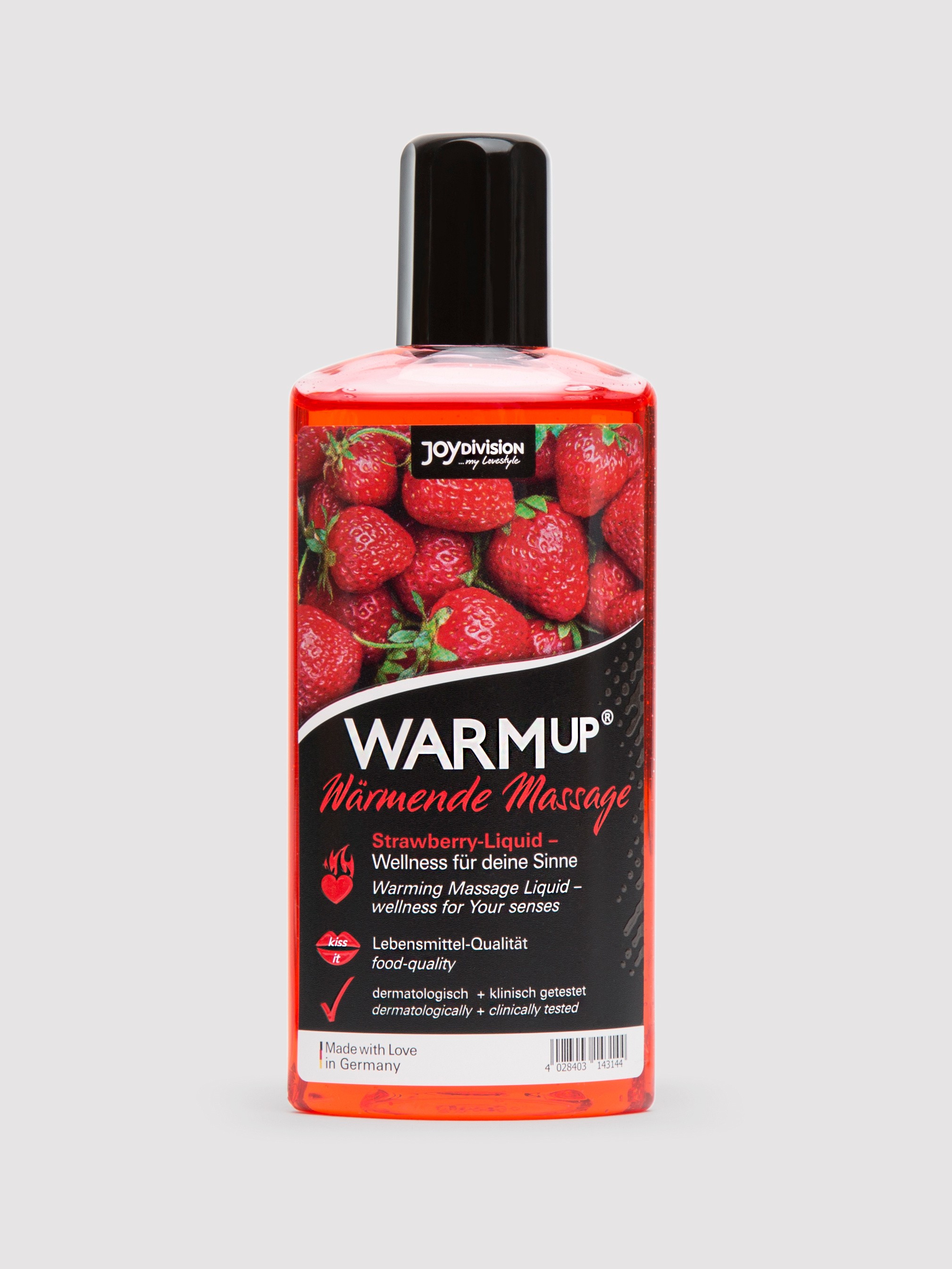 • Strawberry-flavoured warming massage lubricant for soothing strokes, delicious oral sex and sensual foreplay