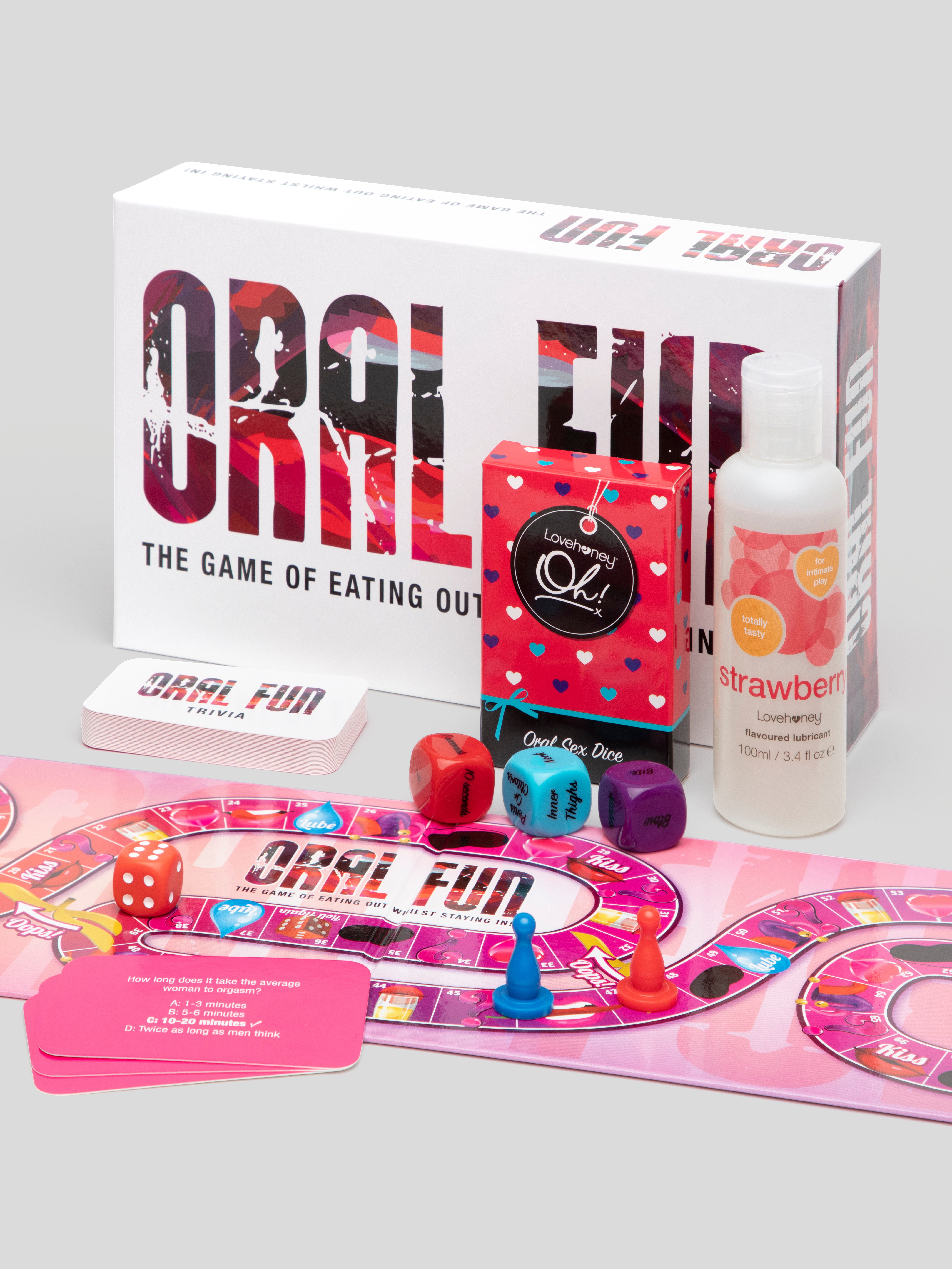 Roll the dice, then roll your tongue - you and your lover are in for heaps of exciting oral fun. This bundle includes everything you need to get down to business, including the ever-popular Oral Fun Board Game.