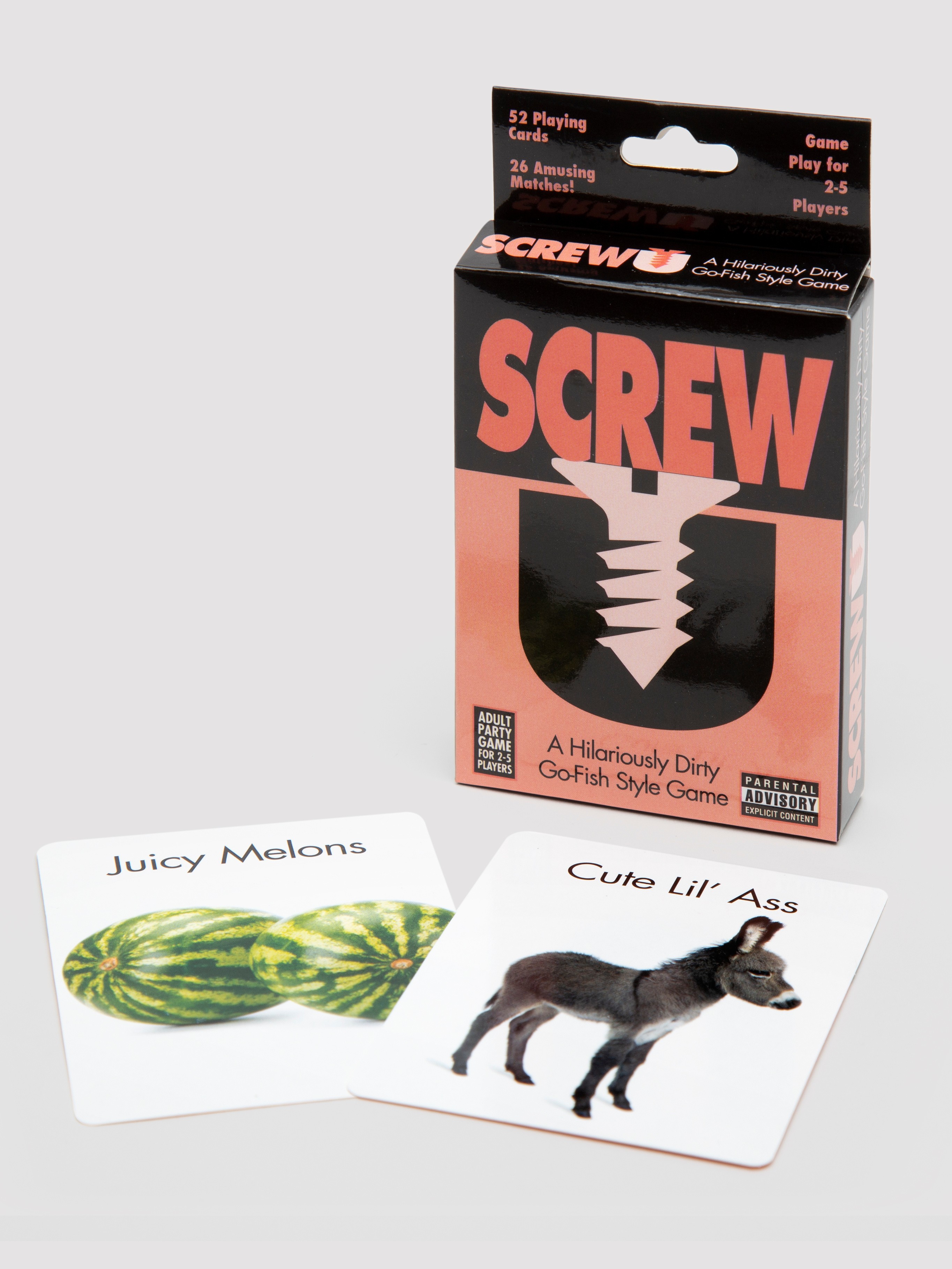 Screw U is a hilariously dirty Go Fish-style card game where the aim of the game is to win as many of the same rank of cards as you can. Cards include: Wet Pussy, Furry Beaver and Big Black Cock. This adult party card game will have players in hysterics.