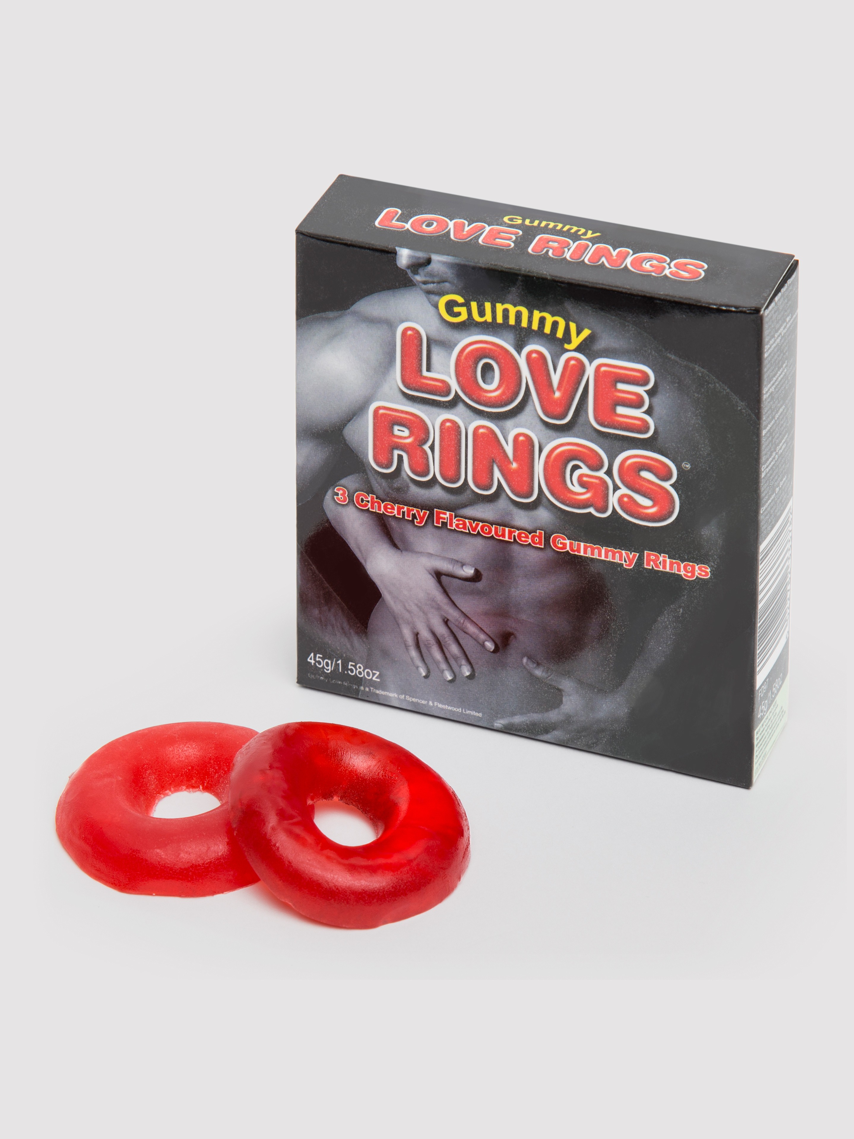 Each pack contains three, individually packaged gummy rings. A cherry flavoured, gelatine based sweet, they can be used exactly as you would use a normal cock ring but can be eaten before, during or after sexual play.
