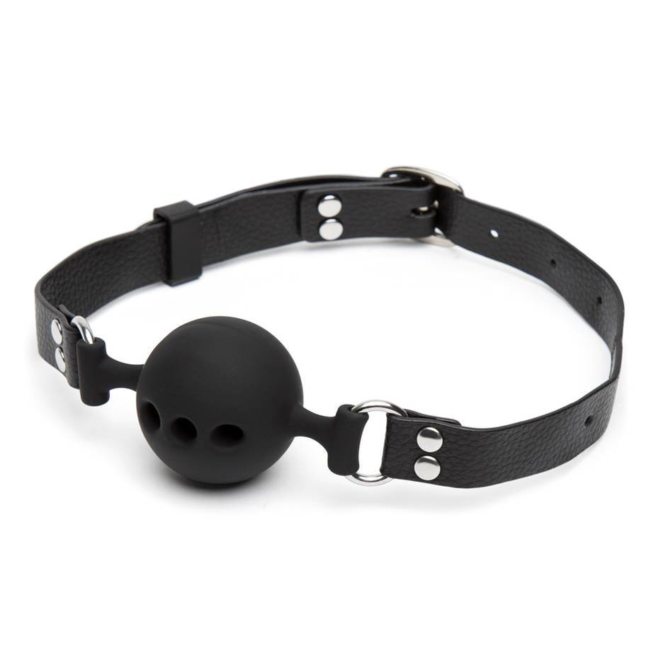 Breathable with adjustable buckle fastening for right fit. Comfortable, sexy and does its job. The only downside is that it can be rather hard to clean/disinfect, like all breathable gags.