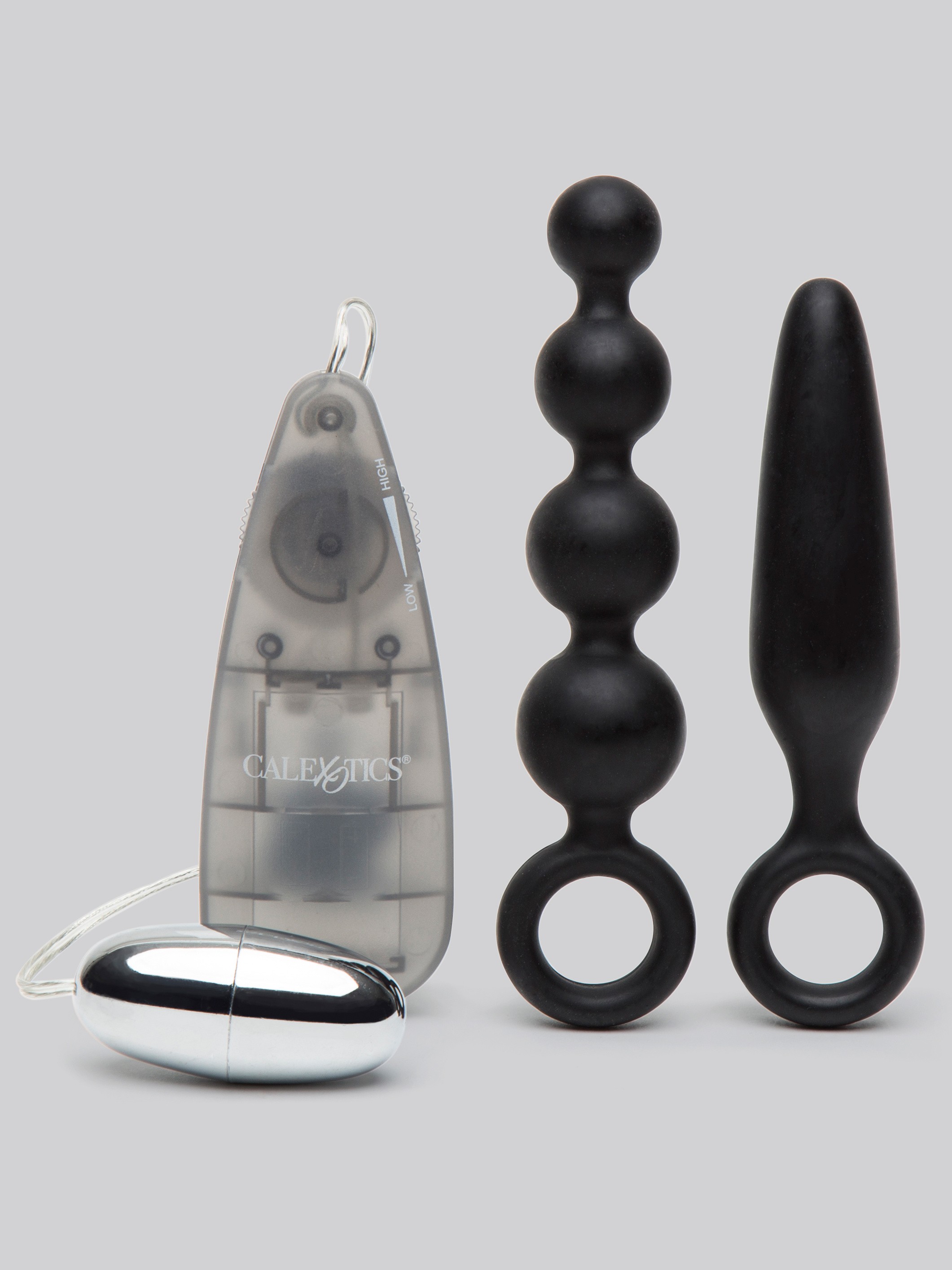 - Contains slender butt plug, petite anal beads, and a wired remote control bullet vibrator