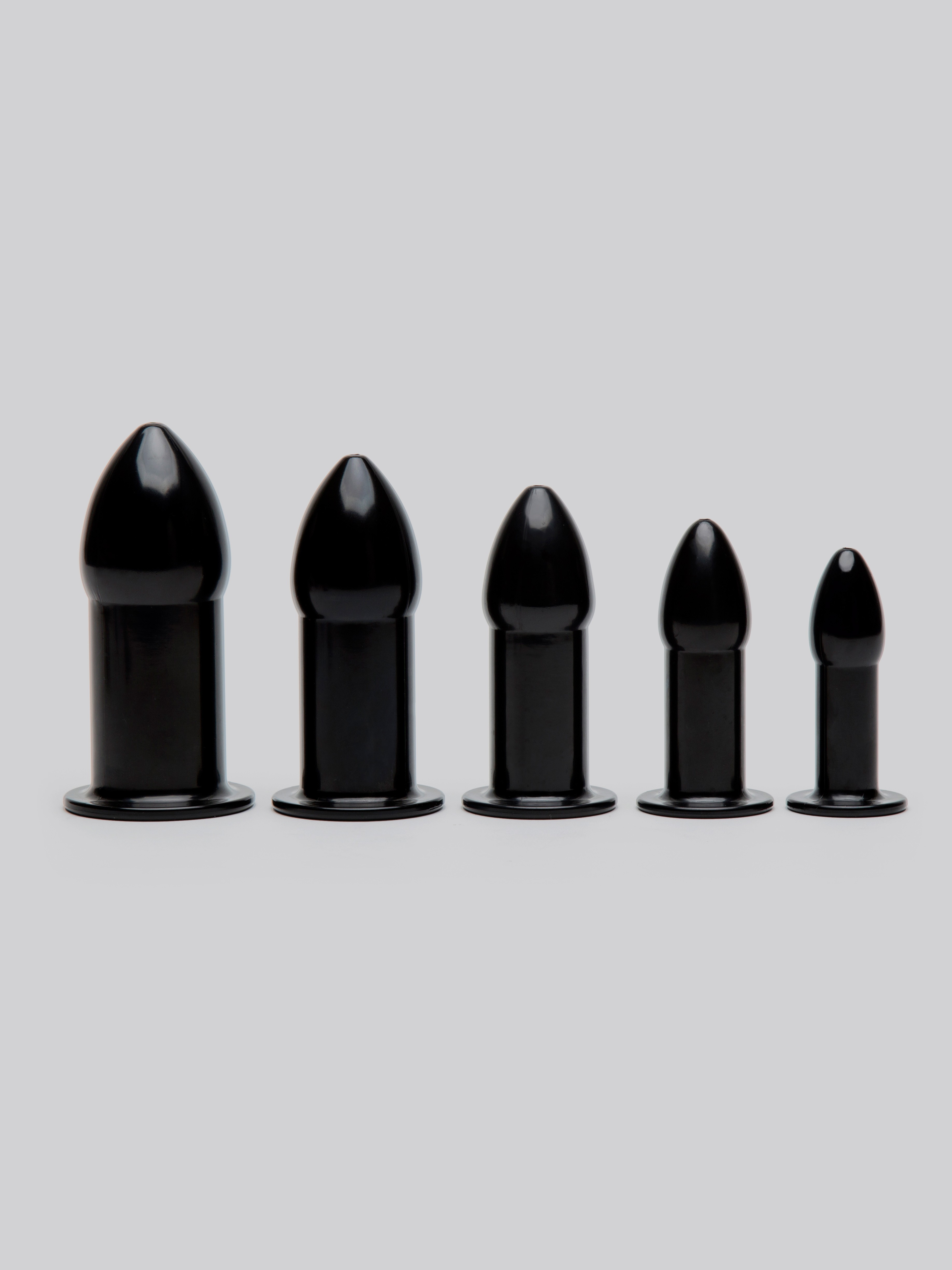 Dial up backdoor play with this dilator starter kit comprising 5 butt plugs. Starting small, enthusiastic anal play fans can work their way up the ranks, ending in an ambitious 2 inch diameter, and some very satisfying sessions.