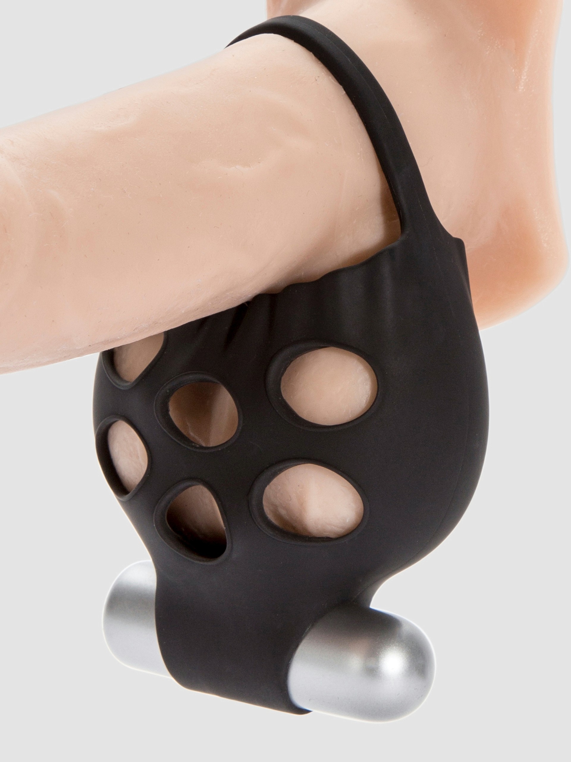 Peek-a-boo! 2 sets of 5 x holes on each side keep things breathable and are sized to accommodate teasing fingertips. Underneath lies the 3 speed bullet, snugly set into the silicone to transmit its powerful vibes with no loss of sensation.