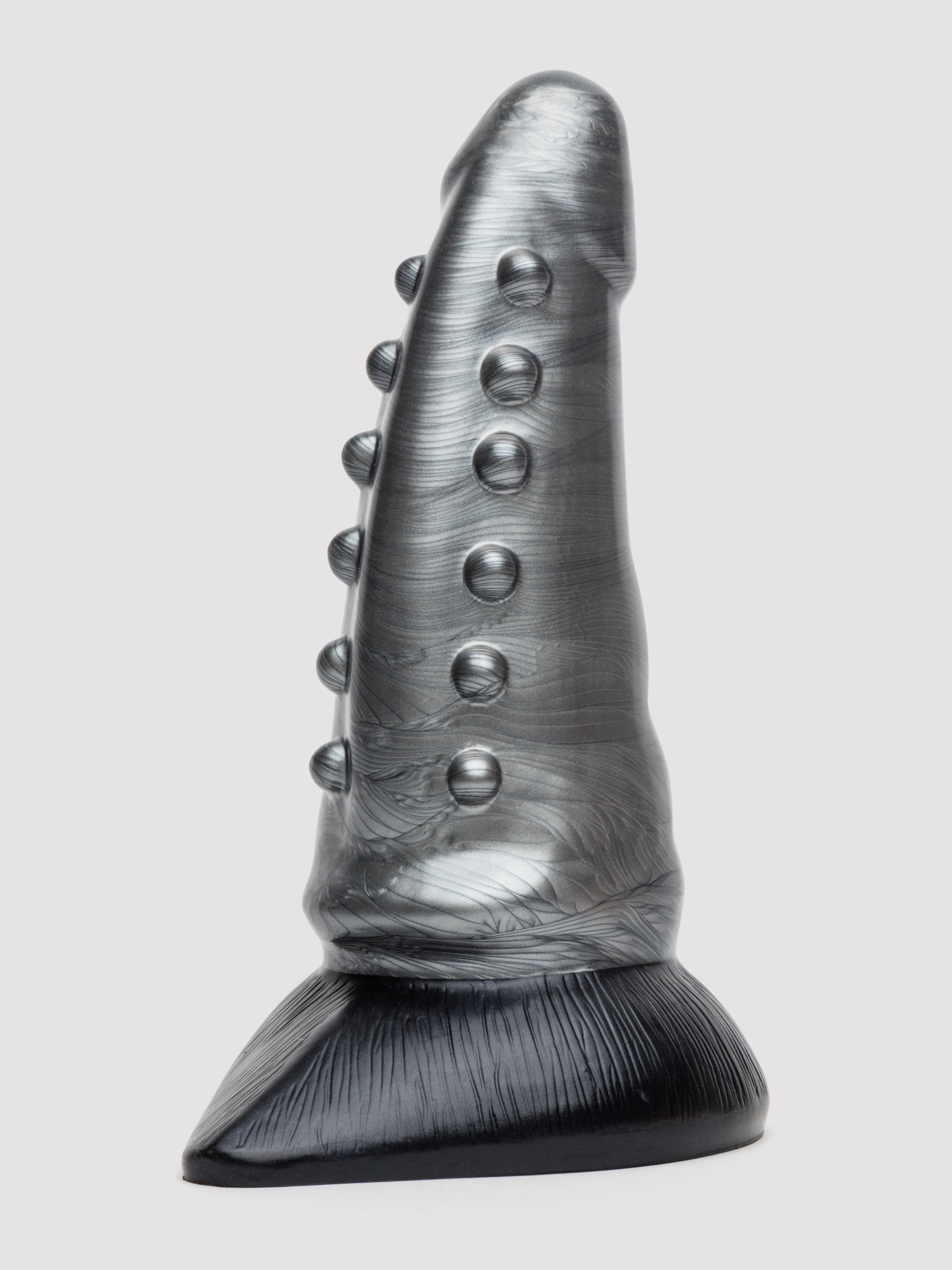 Moulded from silvery silicone, this unbelievable appendage features a line of sucker-like nubs along the shaft and a rounded, probing head. Its gentle arc and shapely design bring to mind creatures of the sea: which do you fancy foolin' with, an aquatic dragon, or a giant squid? Either way, it's poised to suit your fantasies.