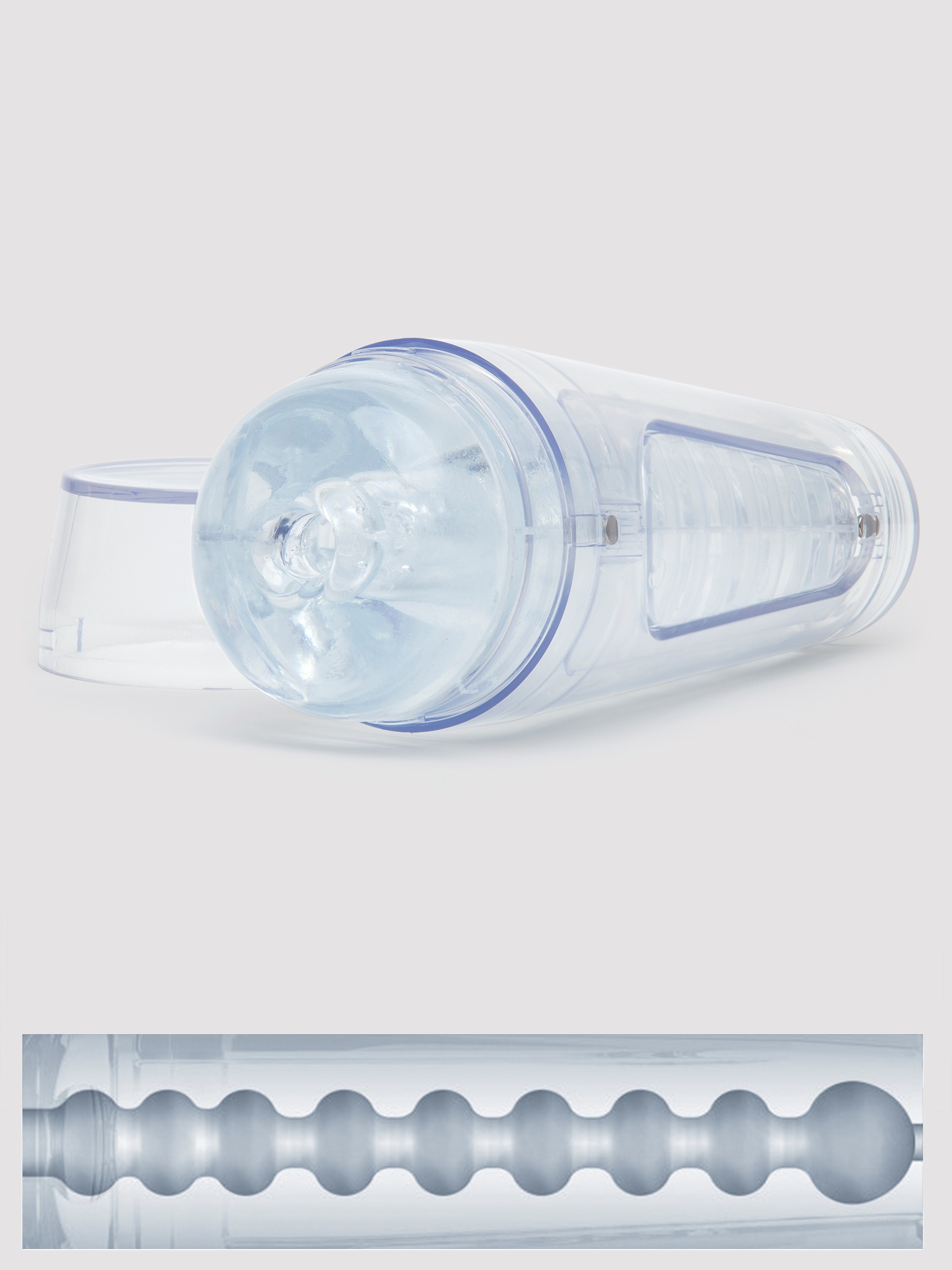 - Clear, textured, non-anatomical male masturbator for sensational stroking satisfaction
