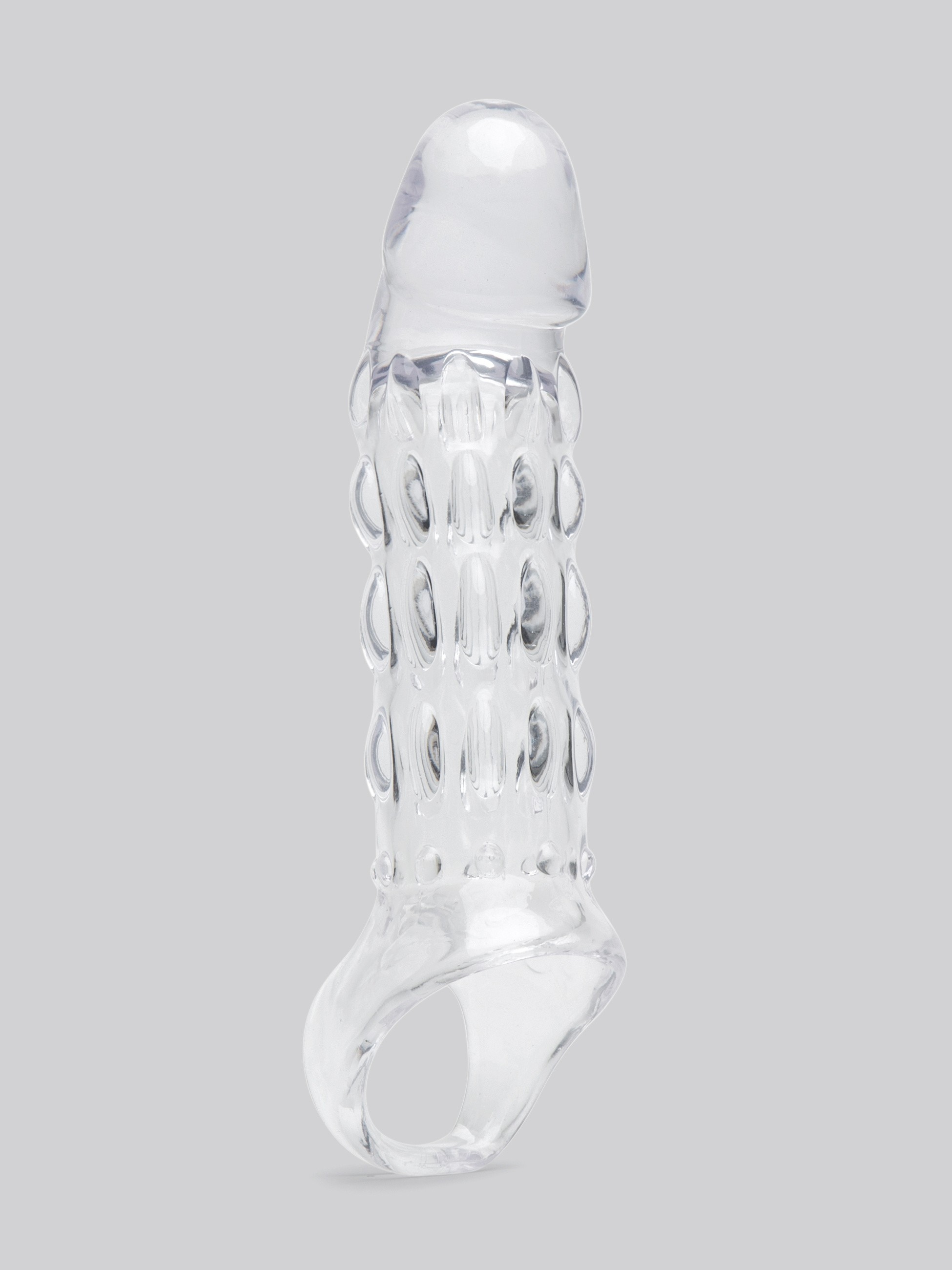 Morph your member into a mighty love machine when you pop on the Power Extension sleeve. Its clear, flexible material adds an extra 2 inches to your length and girth, and, on top of that, it's ridged with tons of pleasurable bumps and nodules.