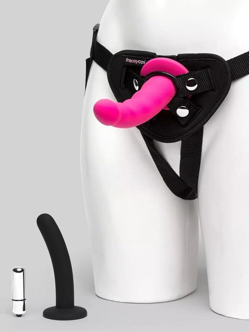 If you're new to strap-on sex or just looking for a complete kit, look no further than Tracey Cox's Supersex Strap-On Pegging Kit. Includes a bullet vibe, two silicone dildos of different sizes and textures, and a machine-washable harness. Just add lube.