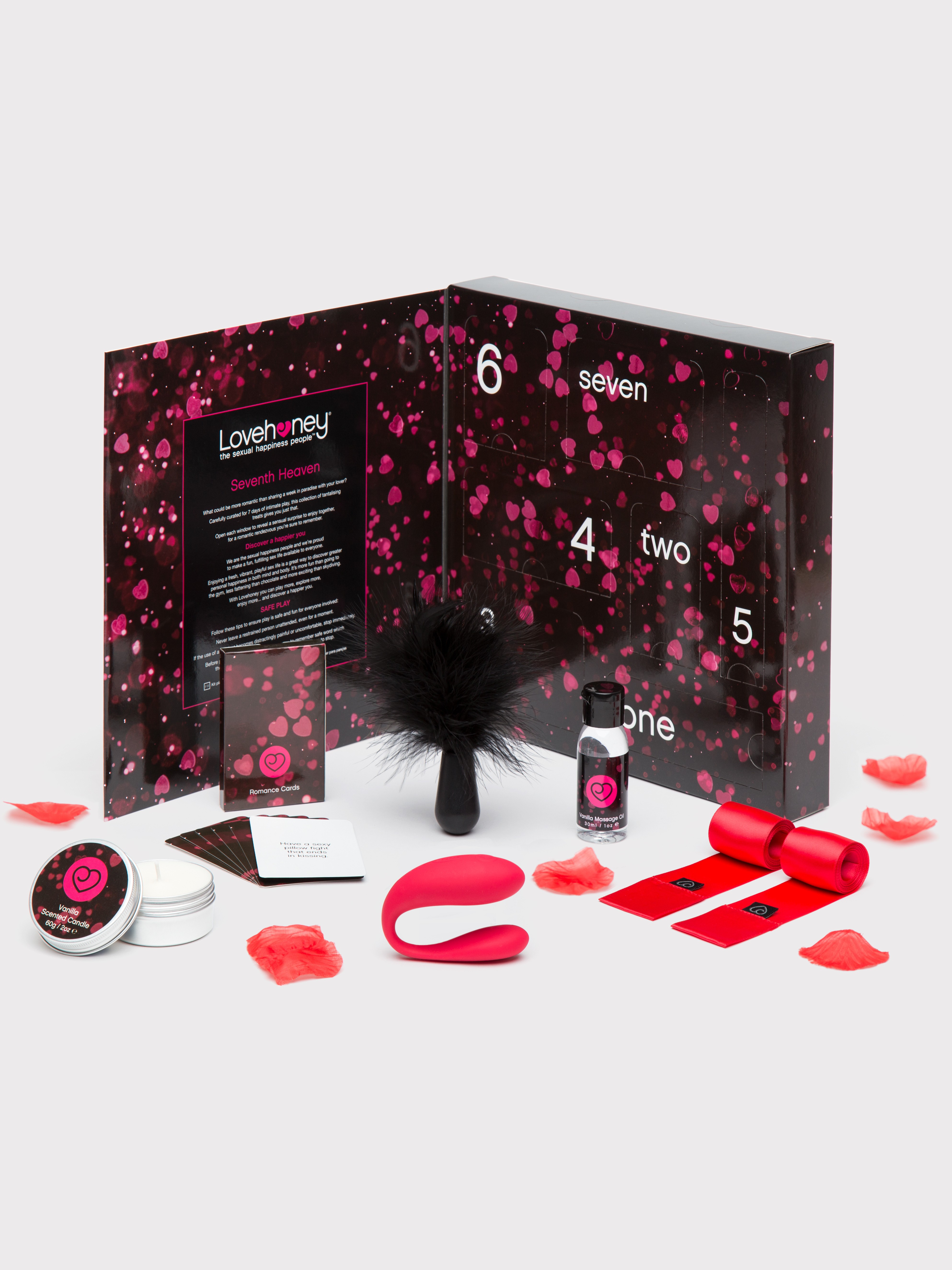Designed to take you and your lover on an intimate journey over the course of a week, our Seventh Heaven Romance kit is filled with tempting tie-and-tease treats, sensual massage essentials and an exclusive wearable couples’ toy